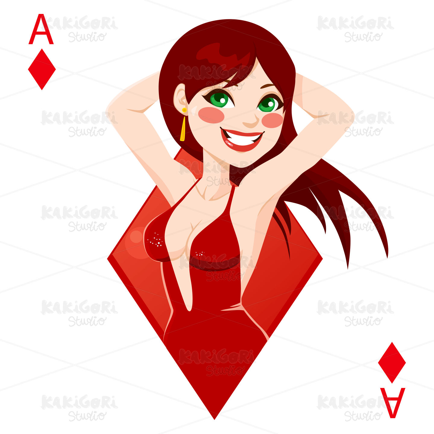 Beautiful red haired girl representing ace of diamonds card from poker game