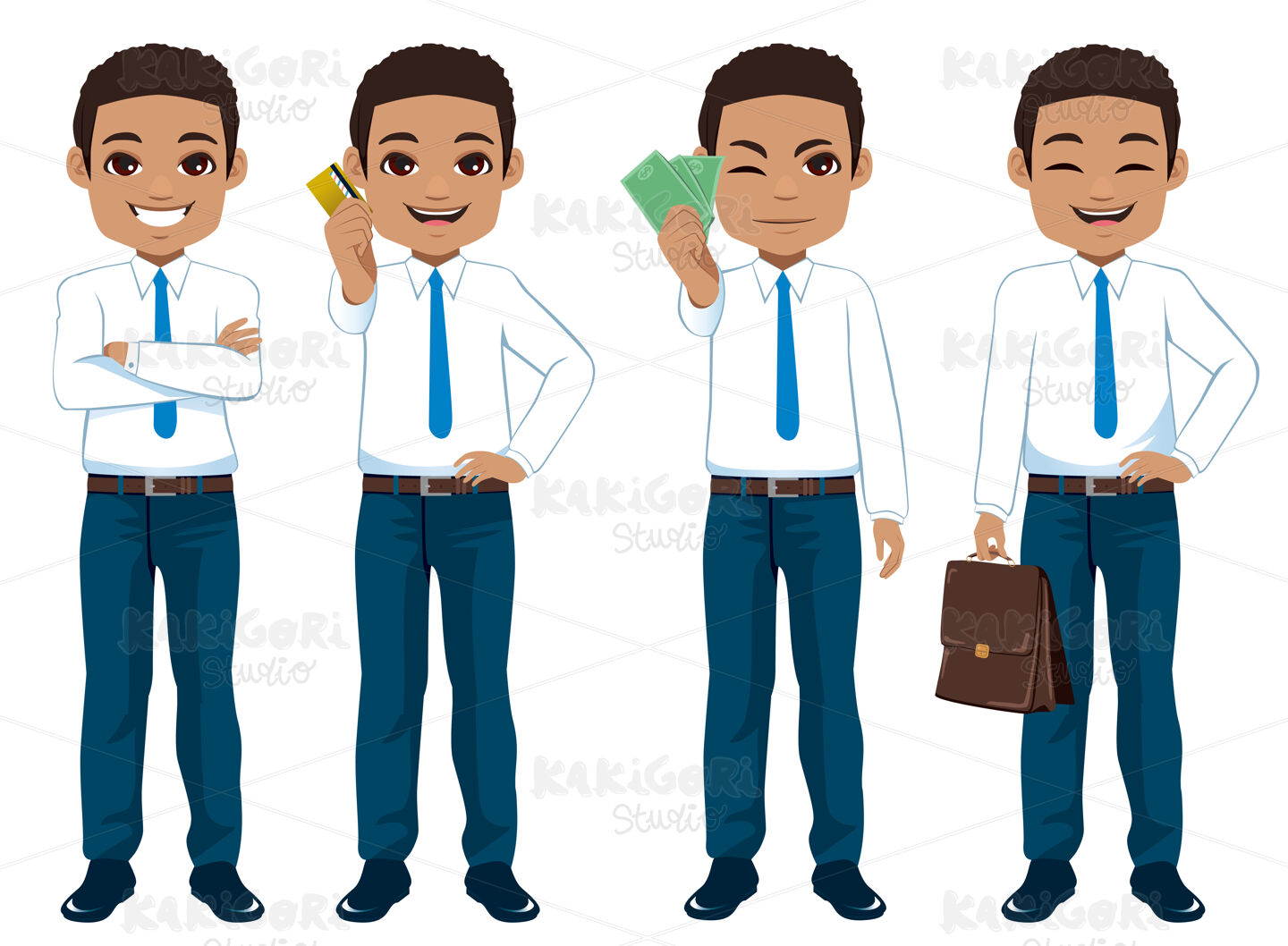 / African American Businessman Set Collection Clipart Vector Illustration 04924