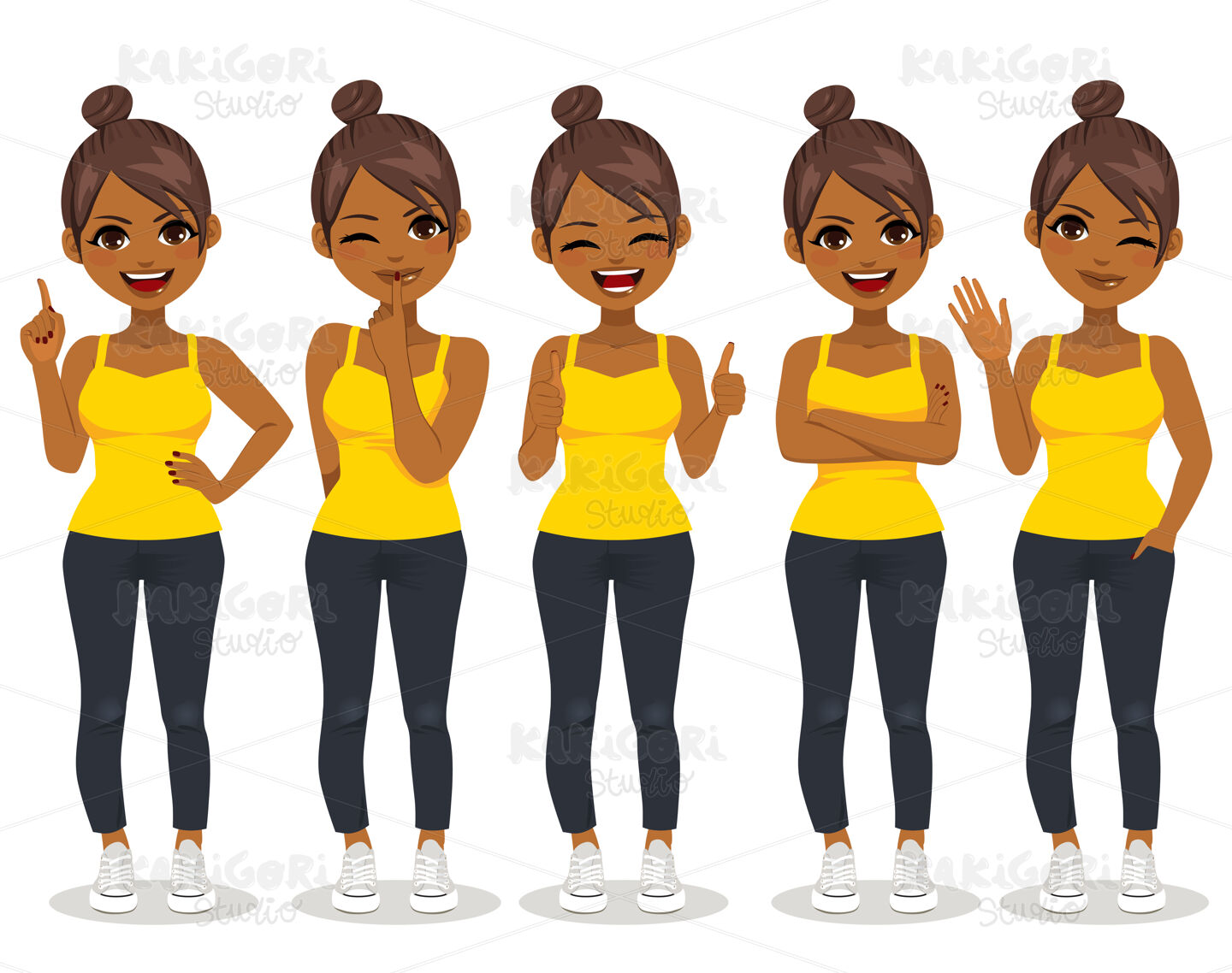 Young African American woman in casual clothes making different gestures isolated vector illustration