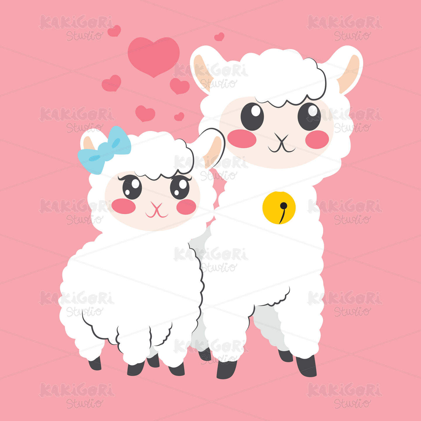 / Alpaca Couple In Love Clipart Vector Illustration 04654