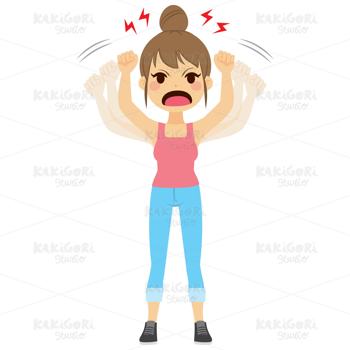 / Angry Woman Shaking Fists Clipart Vector Illustration 03375