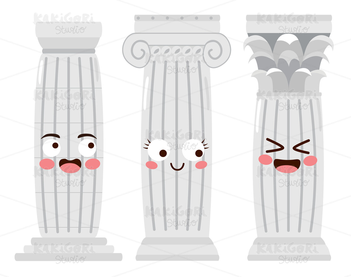 / Antique Greek Columns Characters Clipart Vector Illustration 05121