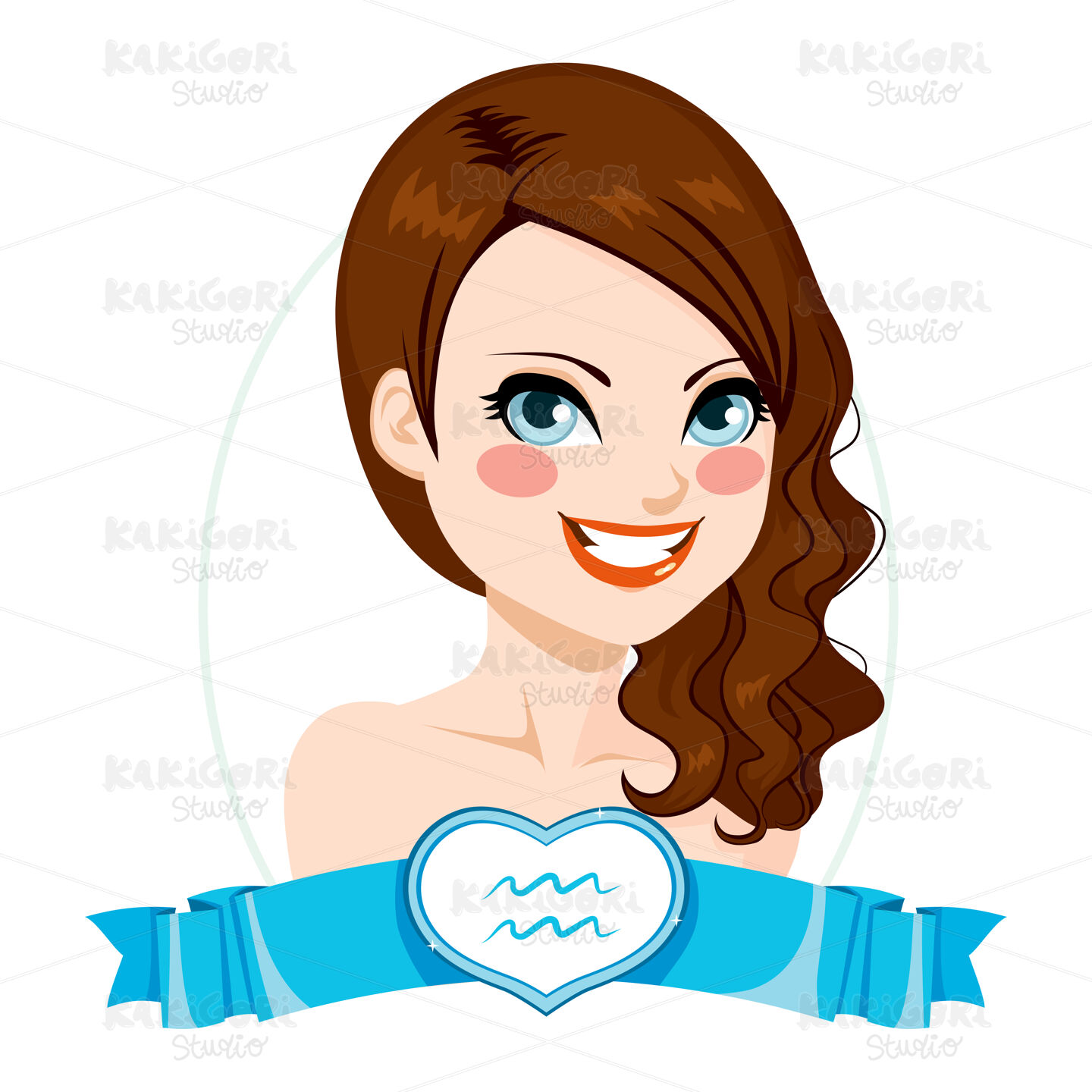 / Aquarius Zodiac Sign Girl Clipart Vector Illustration 01936