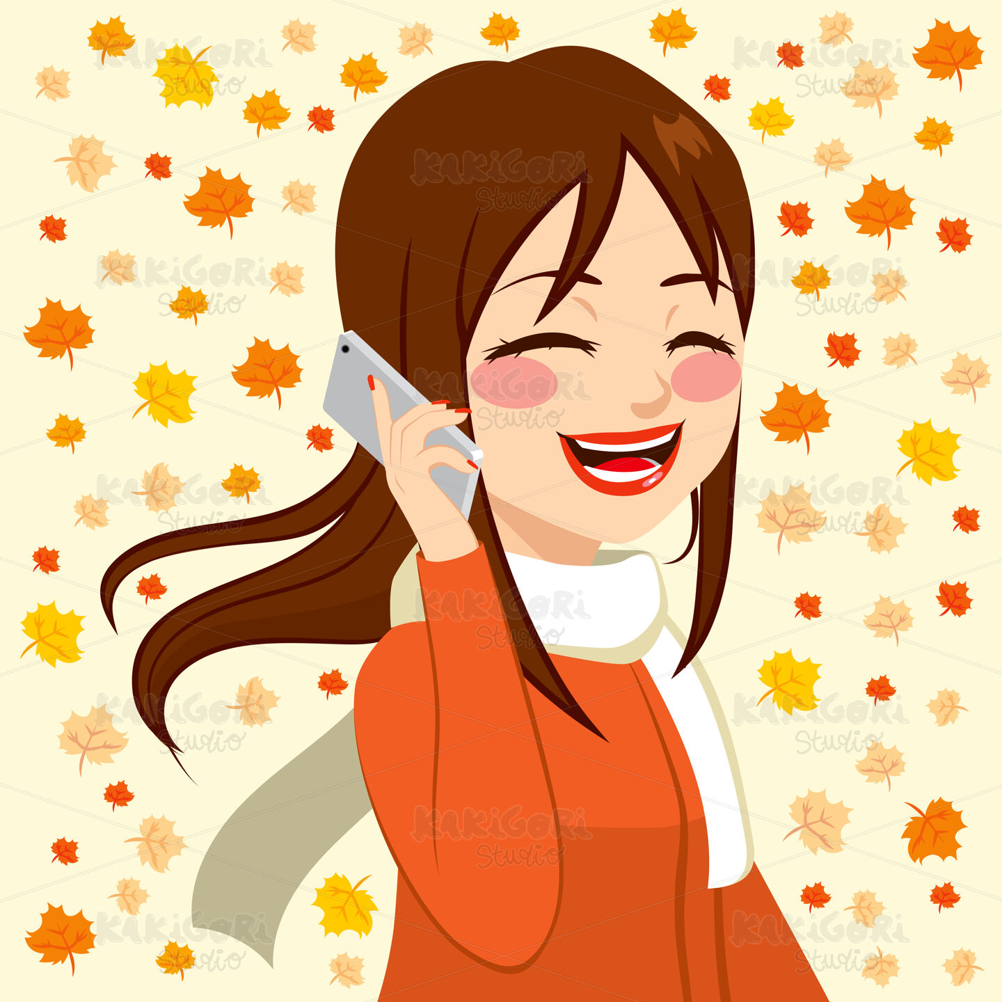 / Autumn Smartphone Girl Clipart Vector Illustration 02980