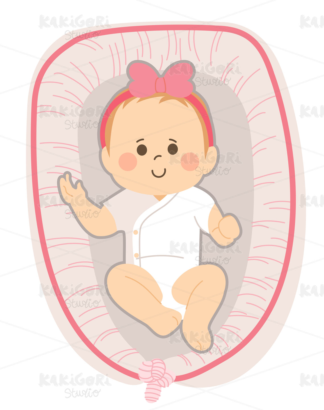 / Baby Girl On Pink Nest Clipart Vector Illustration 05285
