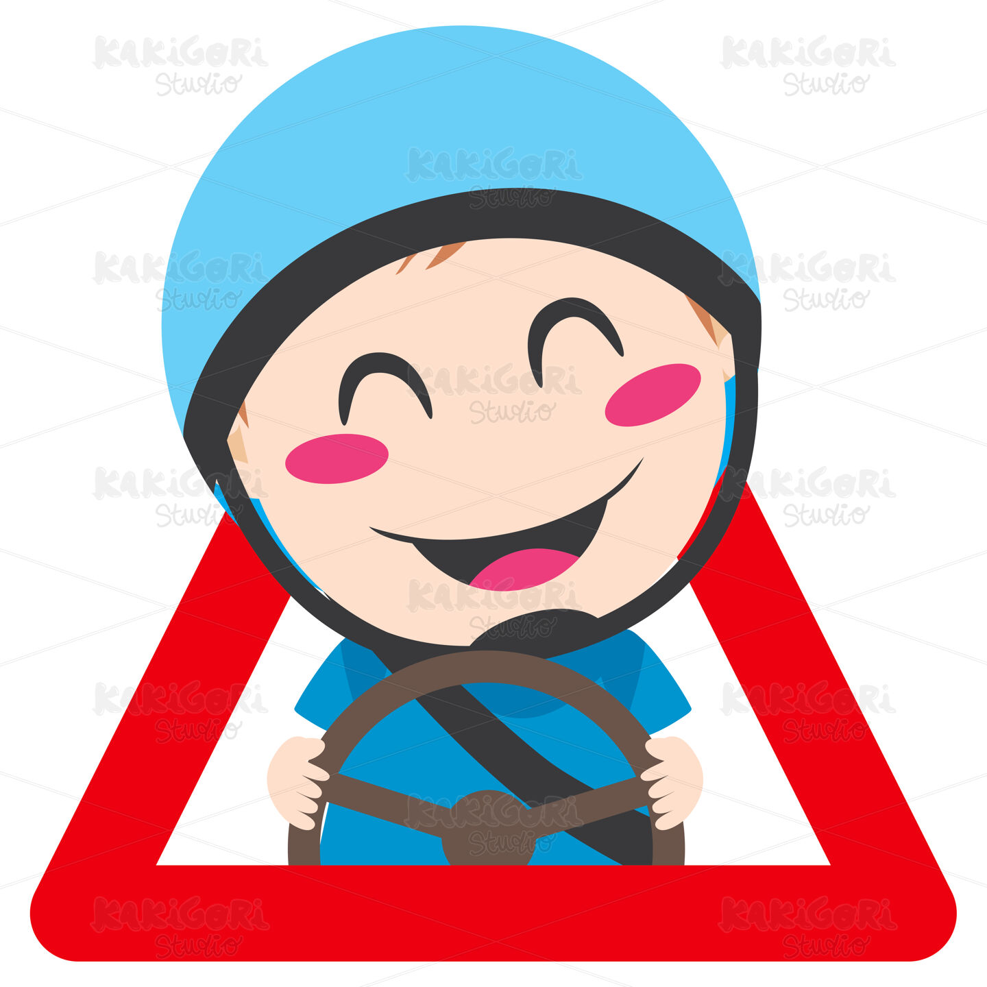 Baby on board red triangle warning sign for safe driving with blue helmet