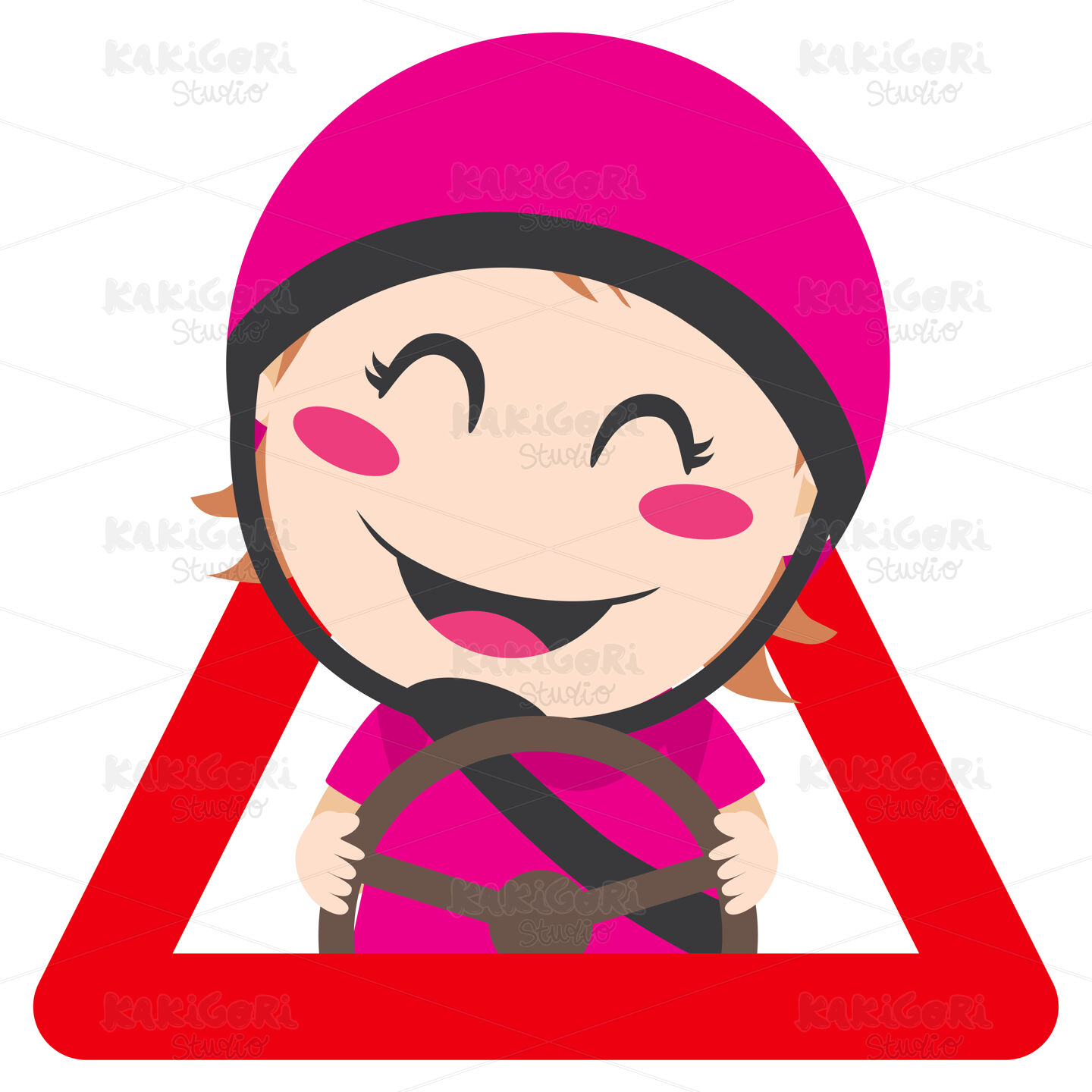 Baby on board red triangle warning sign for safe driving with pink helmet