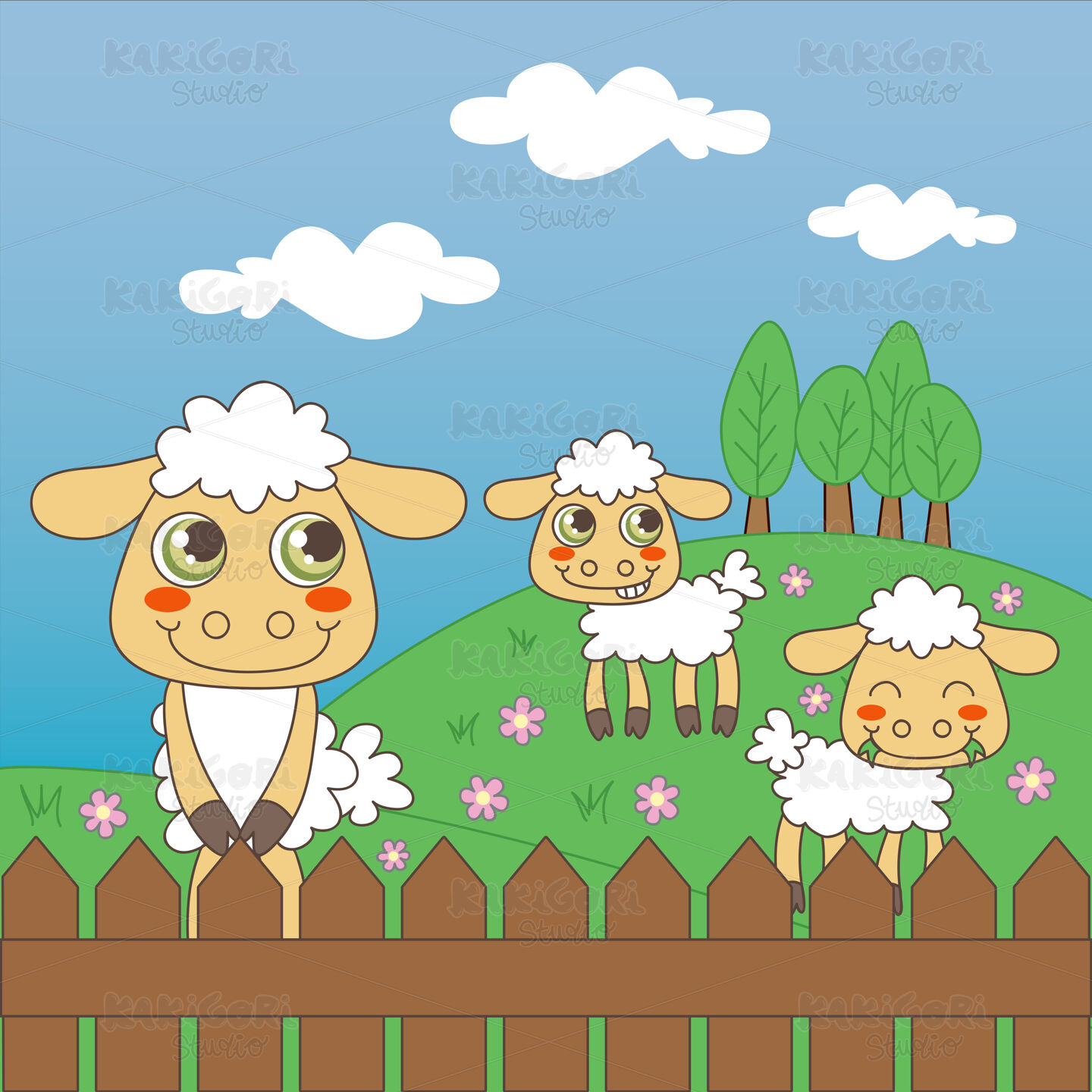 / Baby Sheep Grazing Clipart Vector Illustration 00168