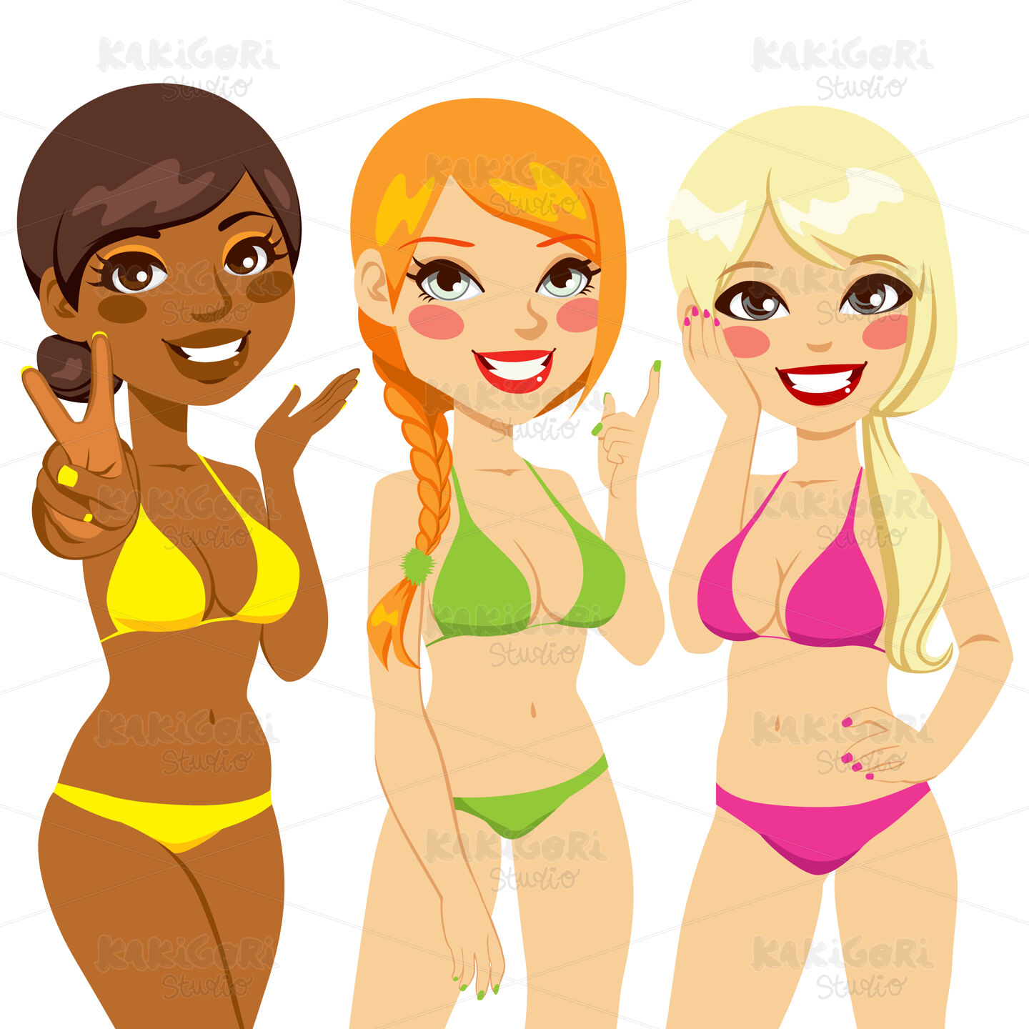 / Beautiful Bikini Girls Clipart Vector Illustration 01099