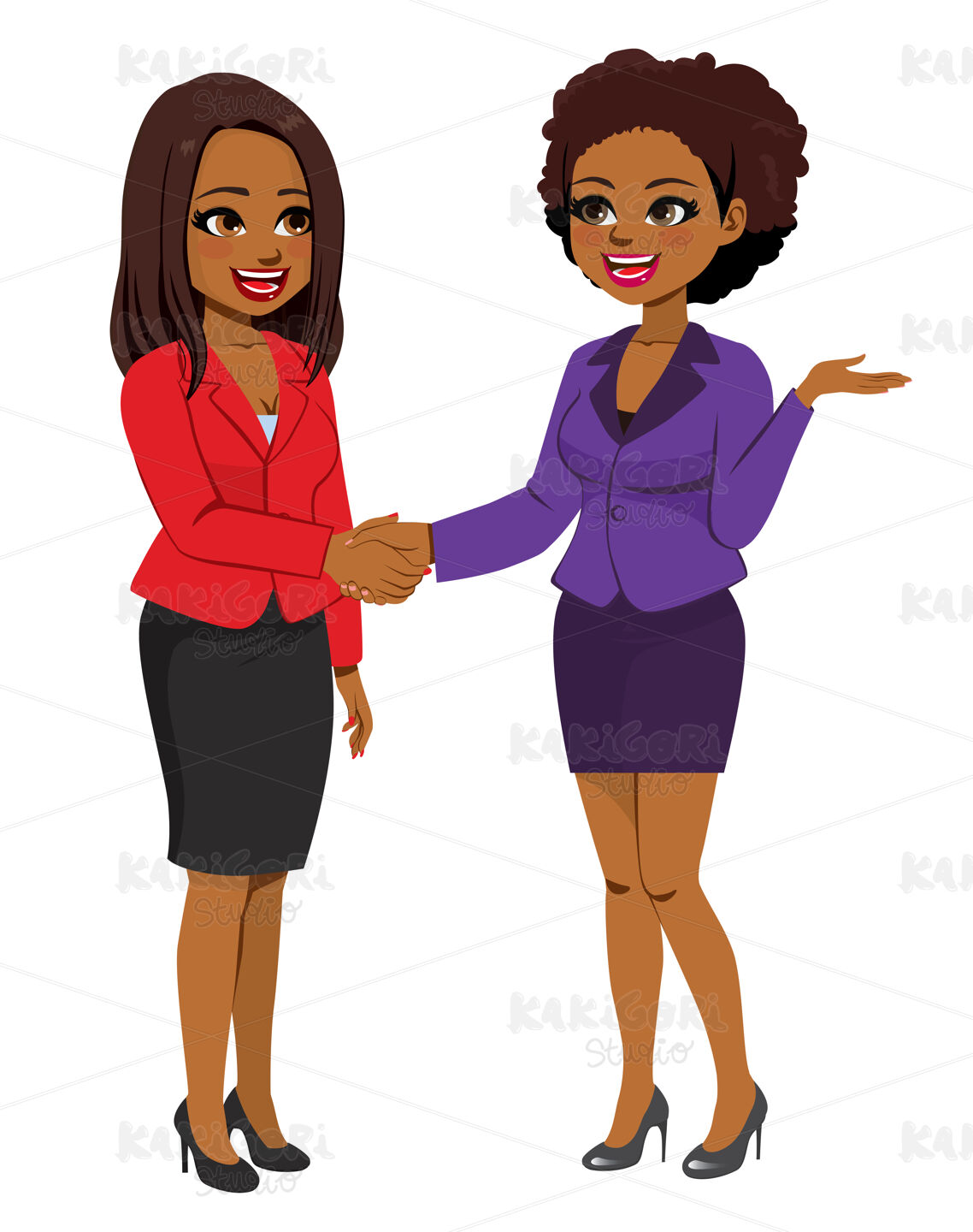 / Black Businesswomen Shaking Hands Clipart Vector Illustration 04925