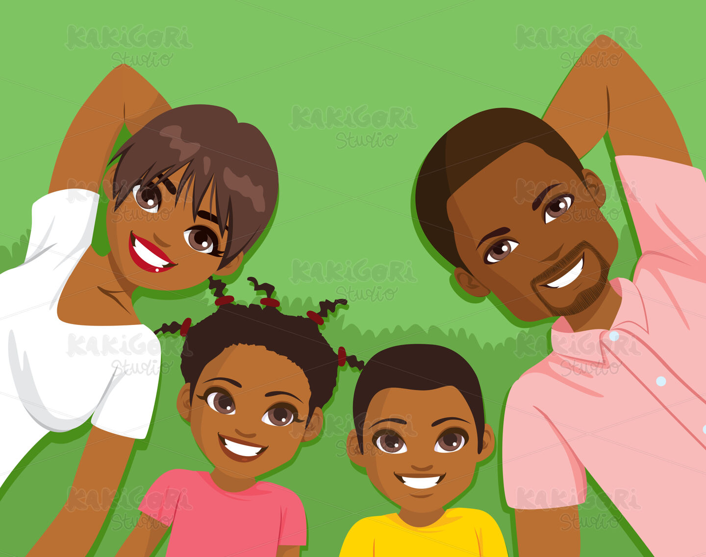 / Black Family Lying On Grass Clipart Vector Illustration 05435