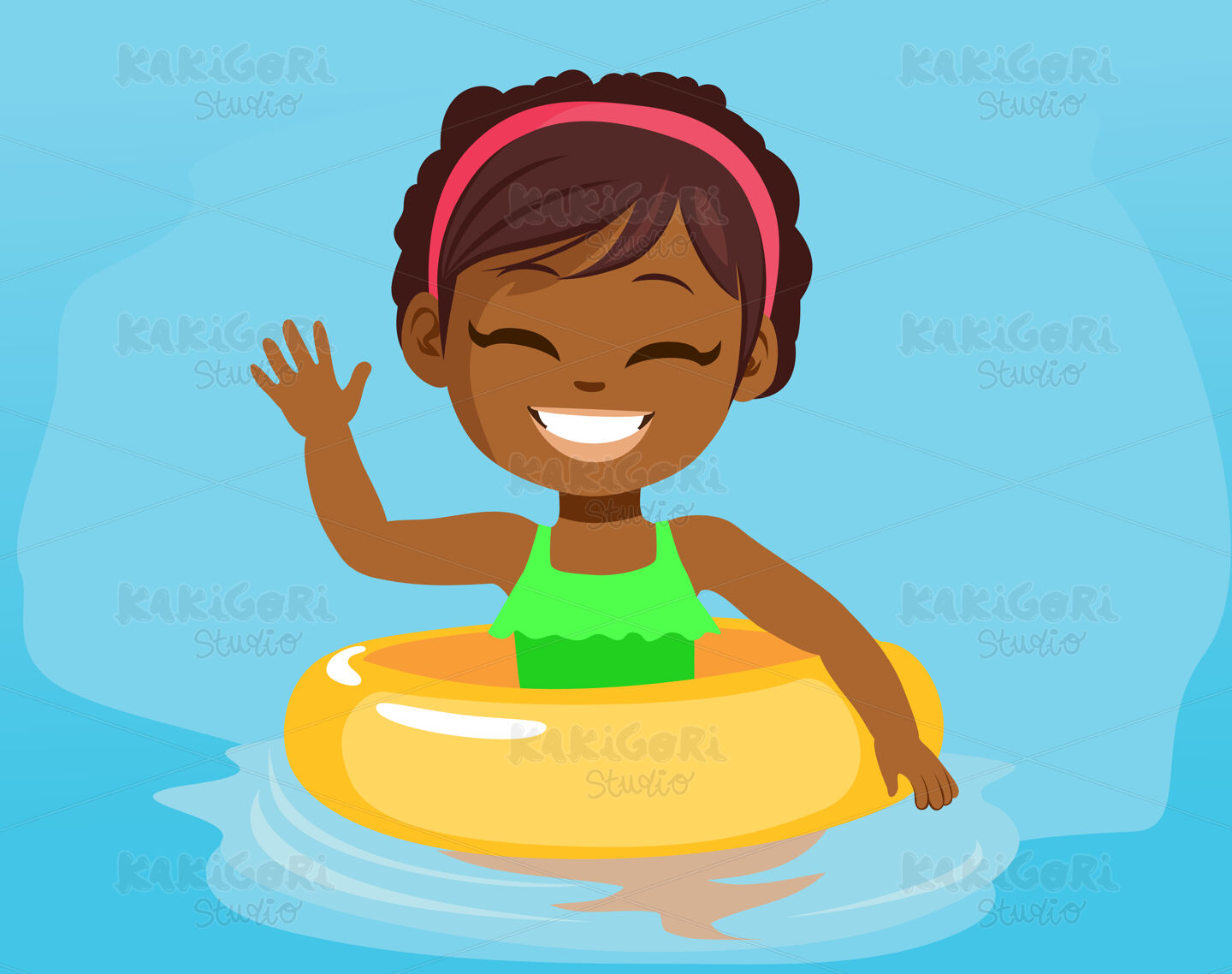 / Black Girl Pool Inflatable Clipart Vector Illustration 05426