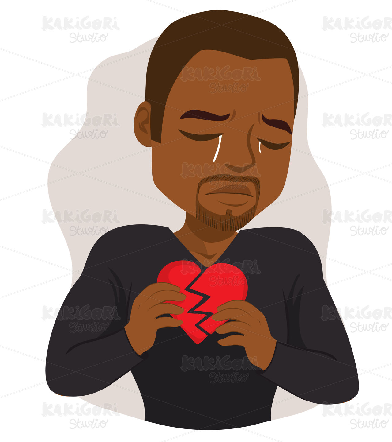 / Black Man Holding Broken Heart Clipart Vector Illustration 05237