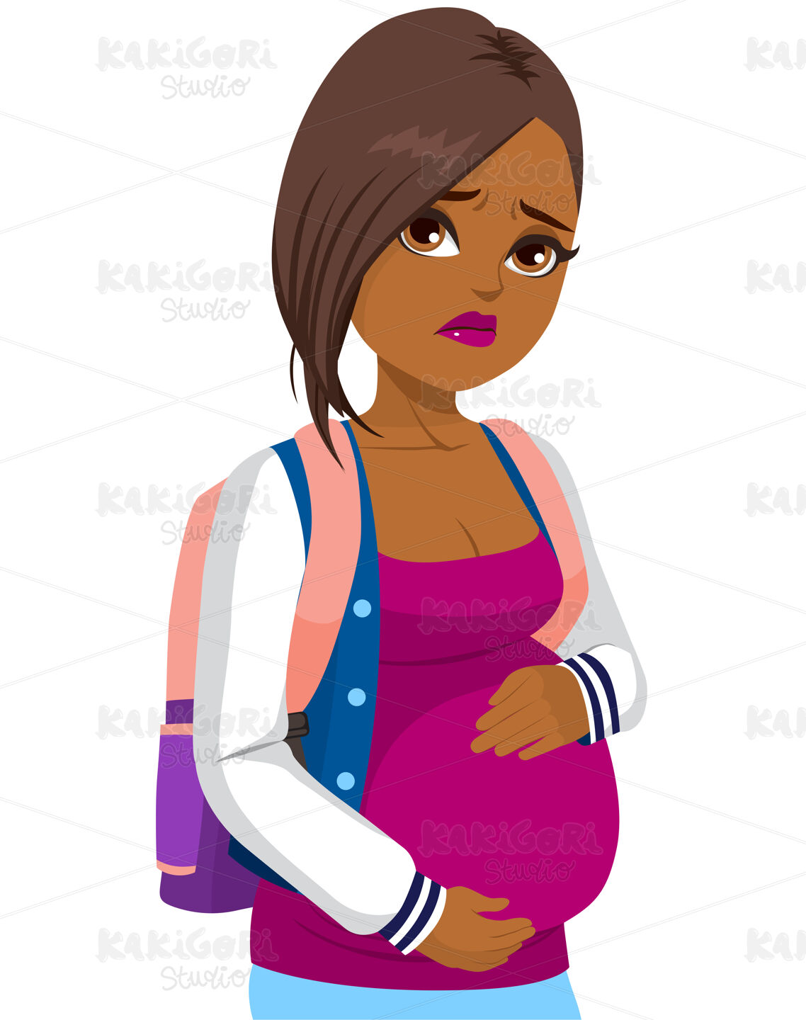 / Black Pregnant Teenager Girl Clipart Vector Illustration 05407