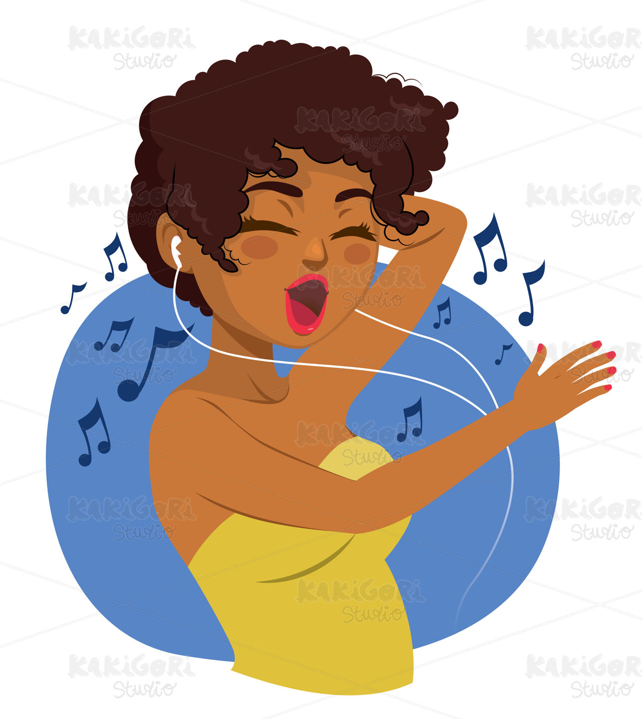 / Black Teenager Woman Listening Music Clipart Vector Illustration 05075