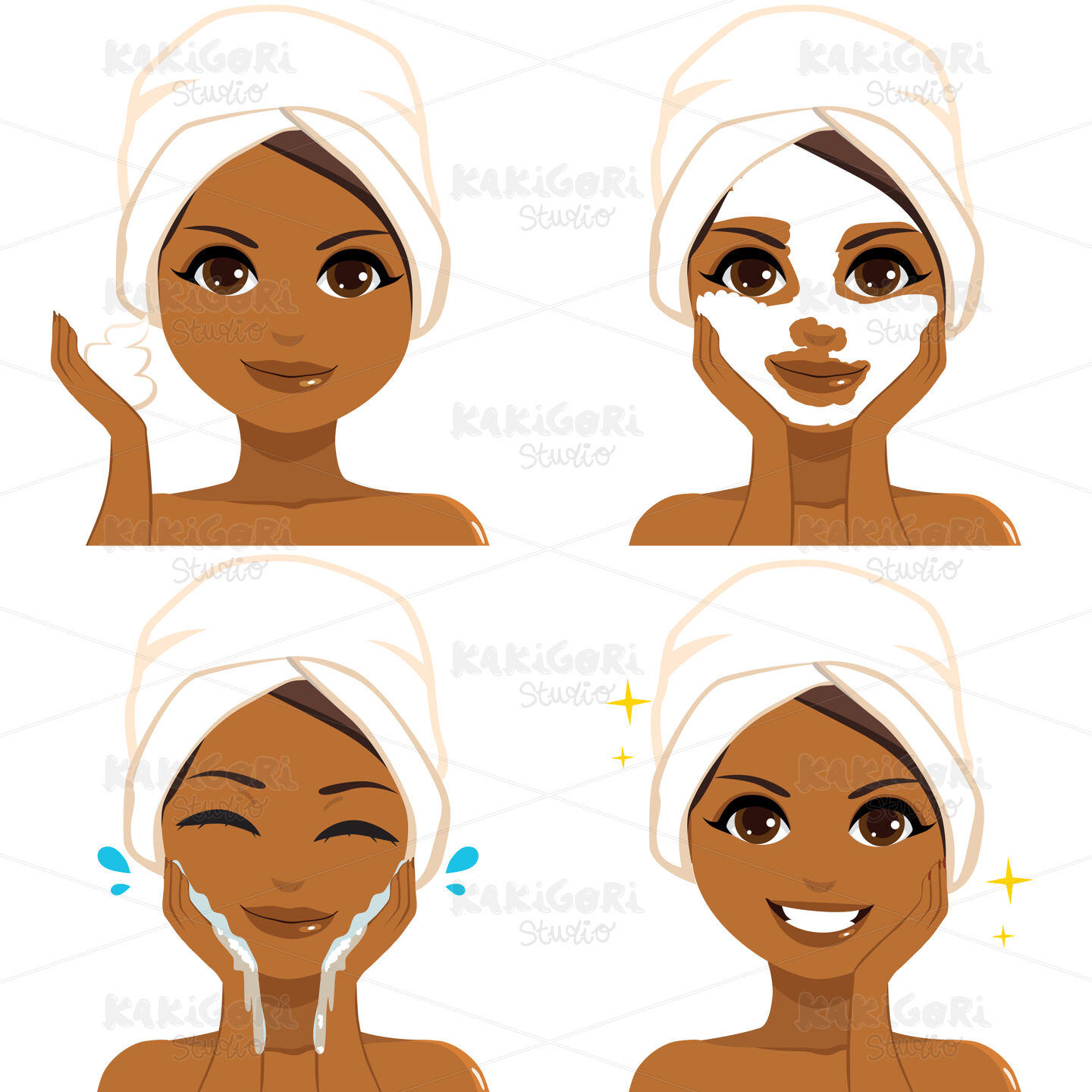 / Black Woman Skin Care Routine Clipart Vector Illustration 05278
