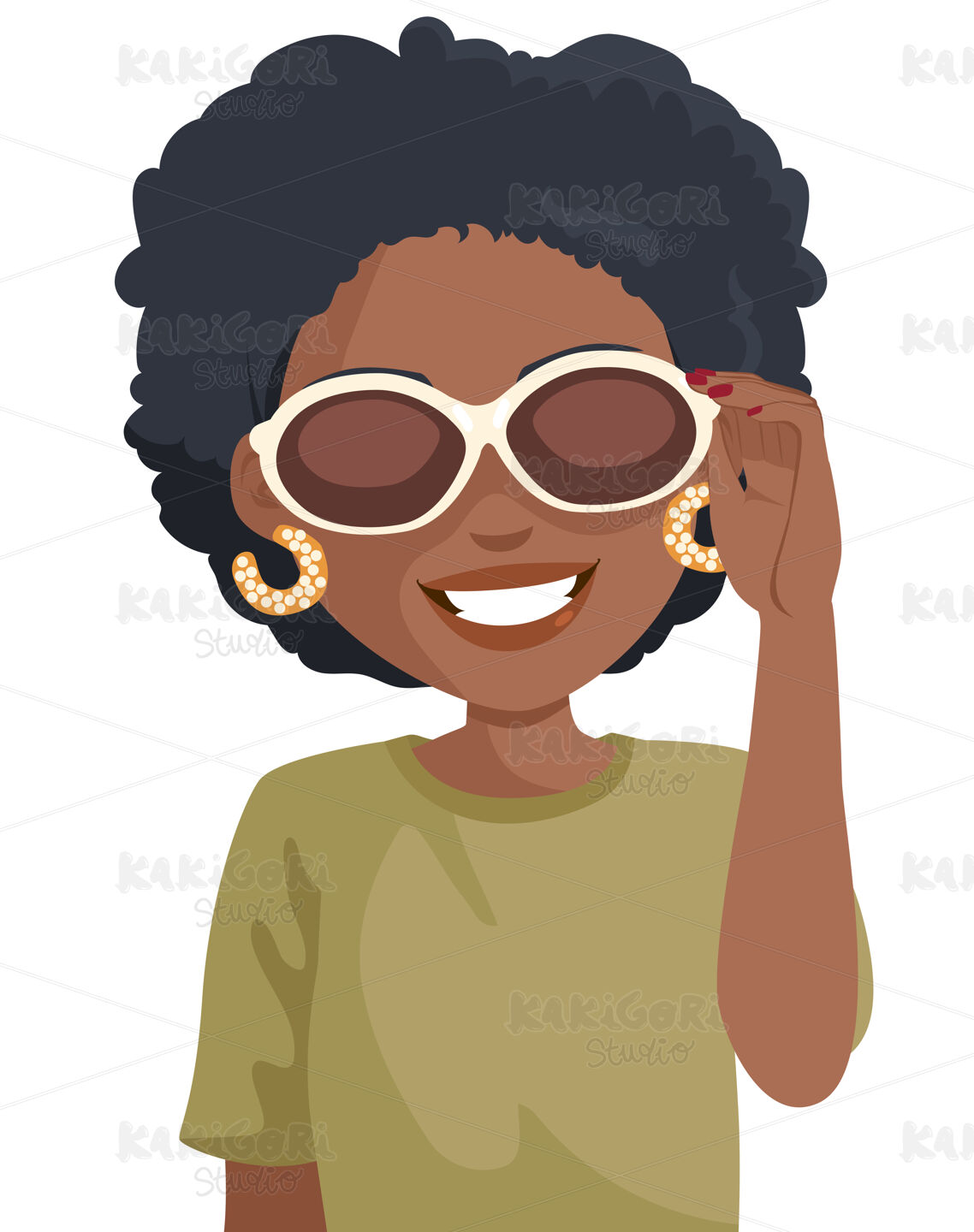 / Black Woman Wearing Sunglasses Clipart Vector Illustration 05327