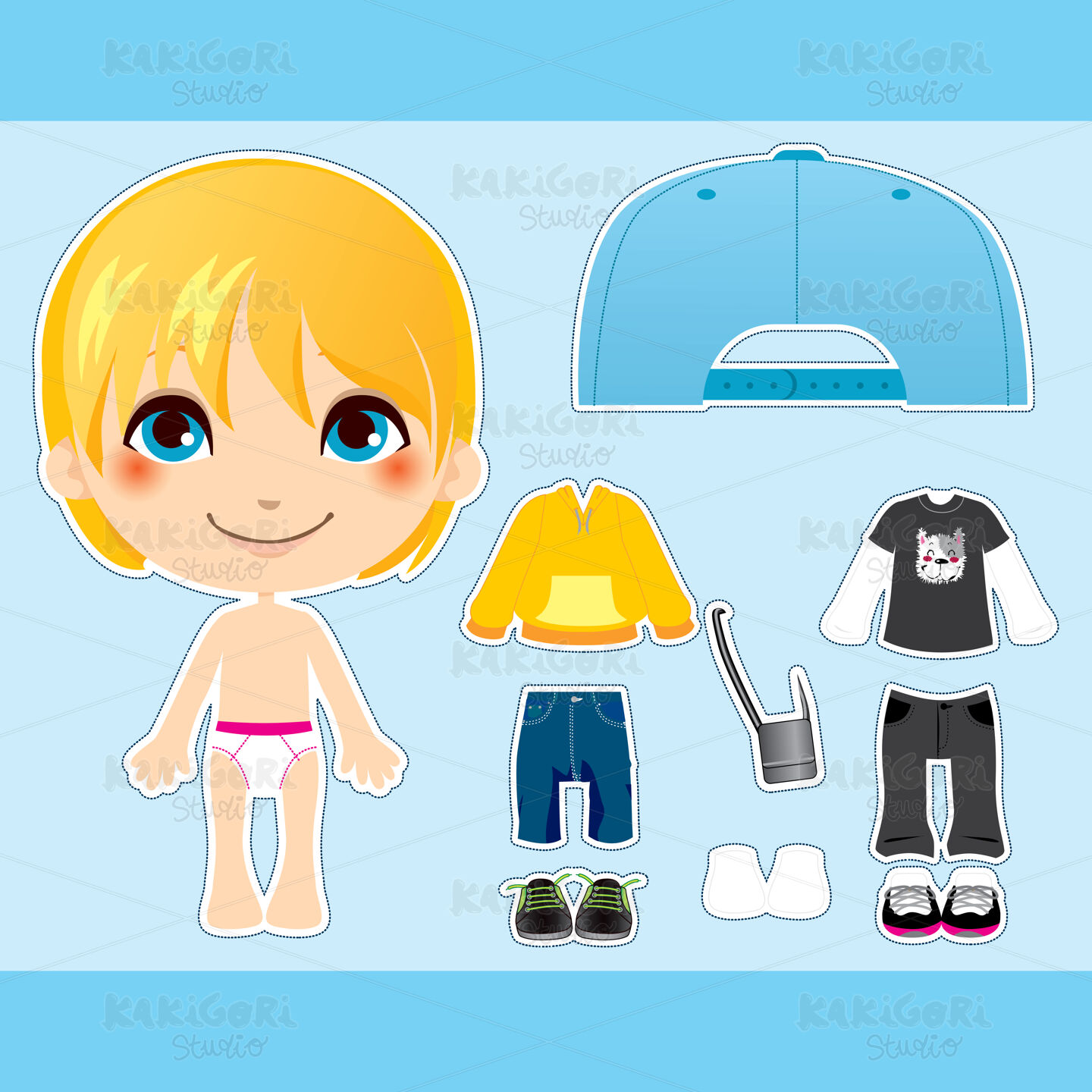 Sweet and cute blond fashion boy clothes paper doll collection set