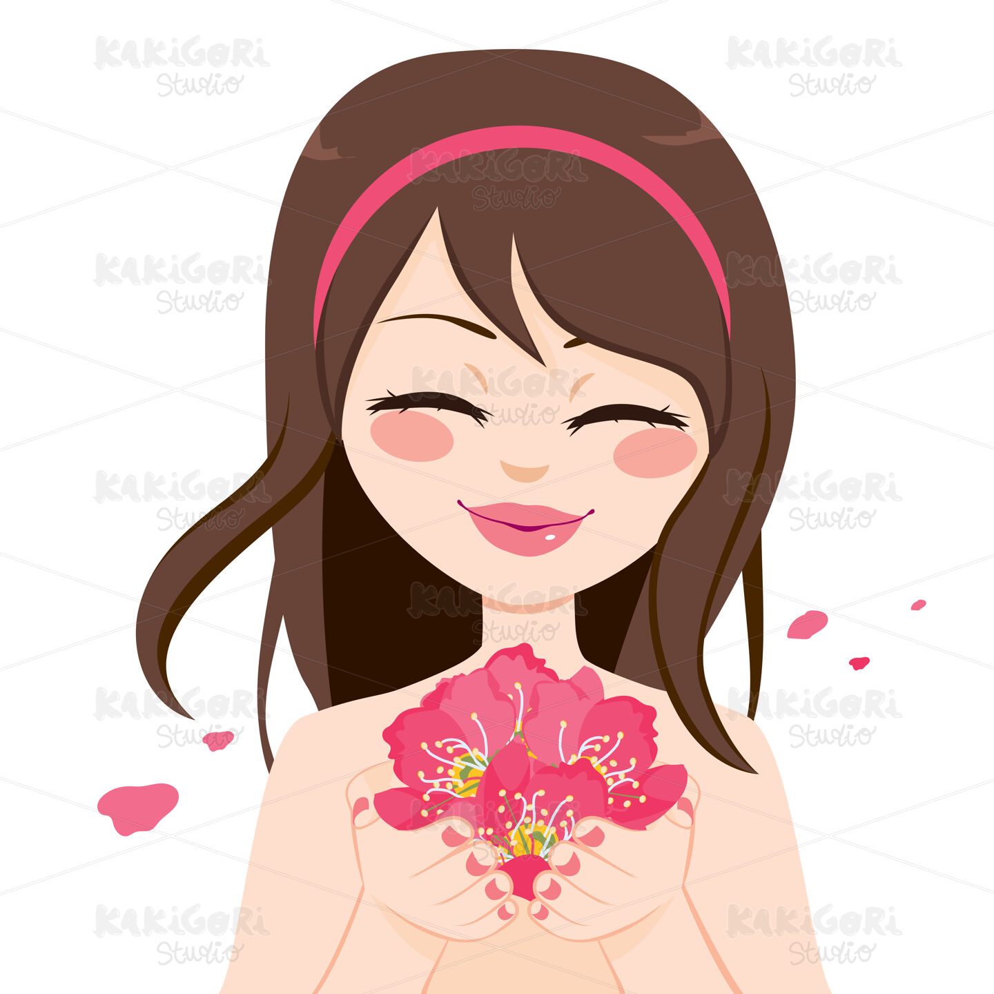 / Blowing Spring Flowers Woman Clipart Vector Illustration 03876