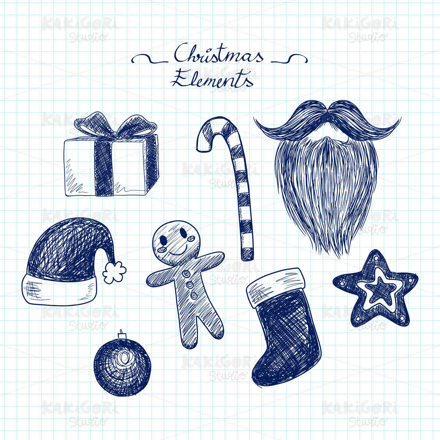 / Blue Christmas Doodle Elements Clipart Vector Illustration 01904