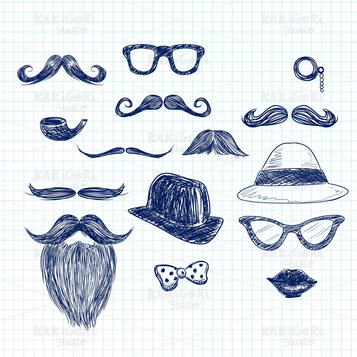 / Blue Hipster Doodle Elements Clipart Vector Illustration 01903