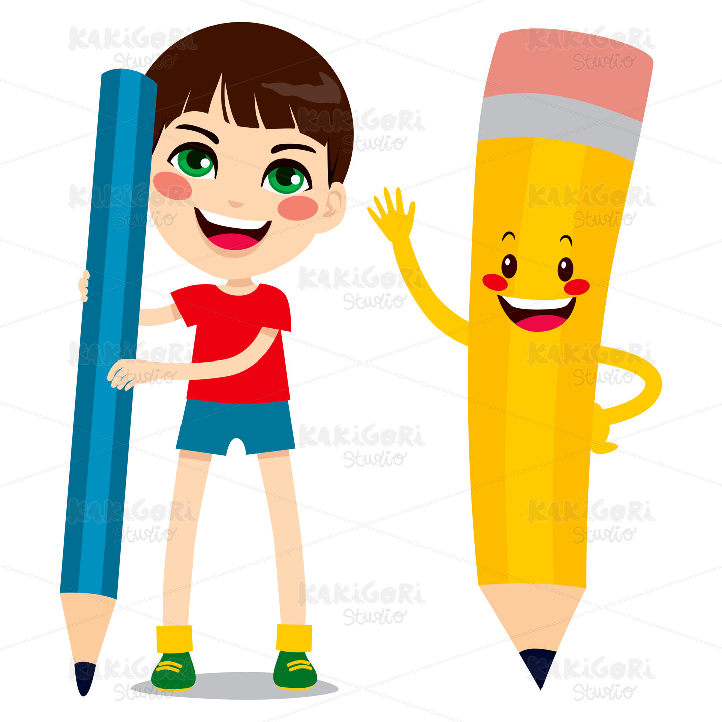 / Boy And Pencil Character Clipart Vector Illustration 01716