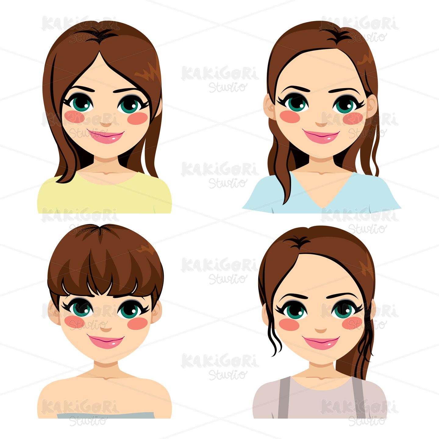 / Brunette Hairstyle Clipart Vector Illustration 03551