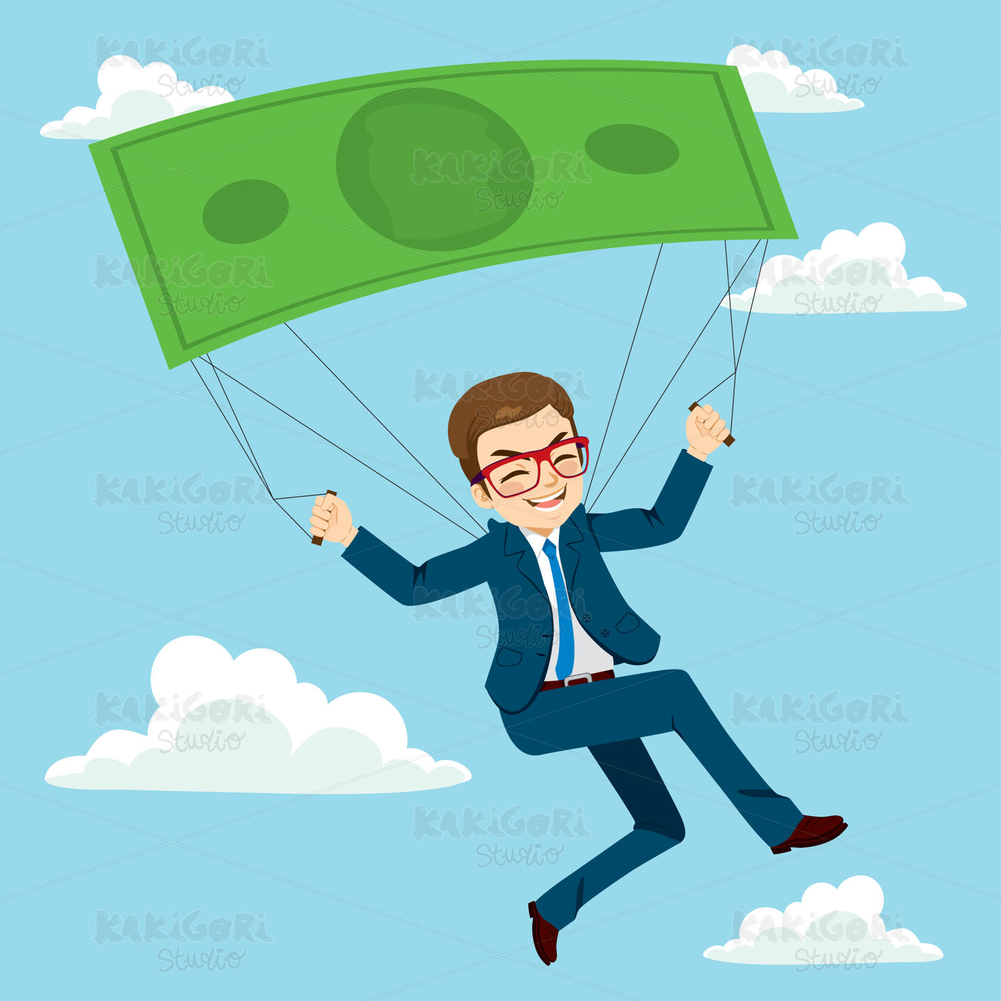 / Businessman Banknote Parachute Clipart Vector Illustration 03378