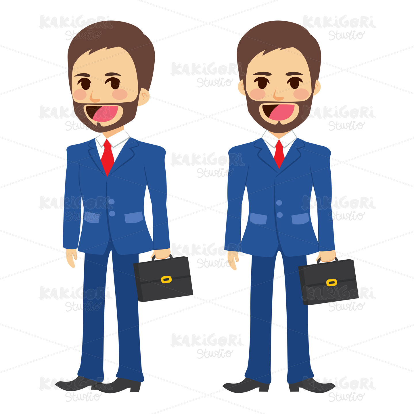 Young businessman in flat color cartoon style wearing suit with suitcase isolated on white background
