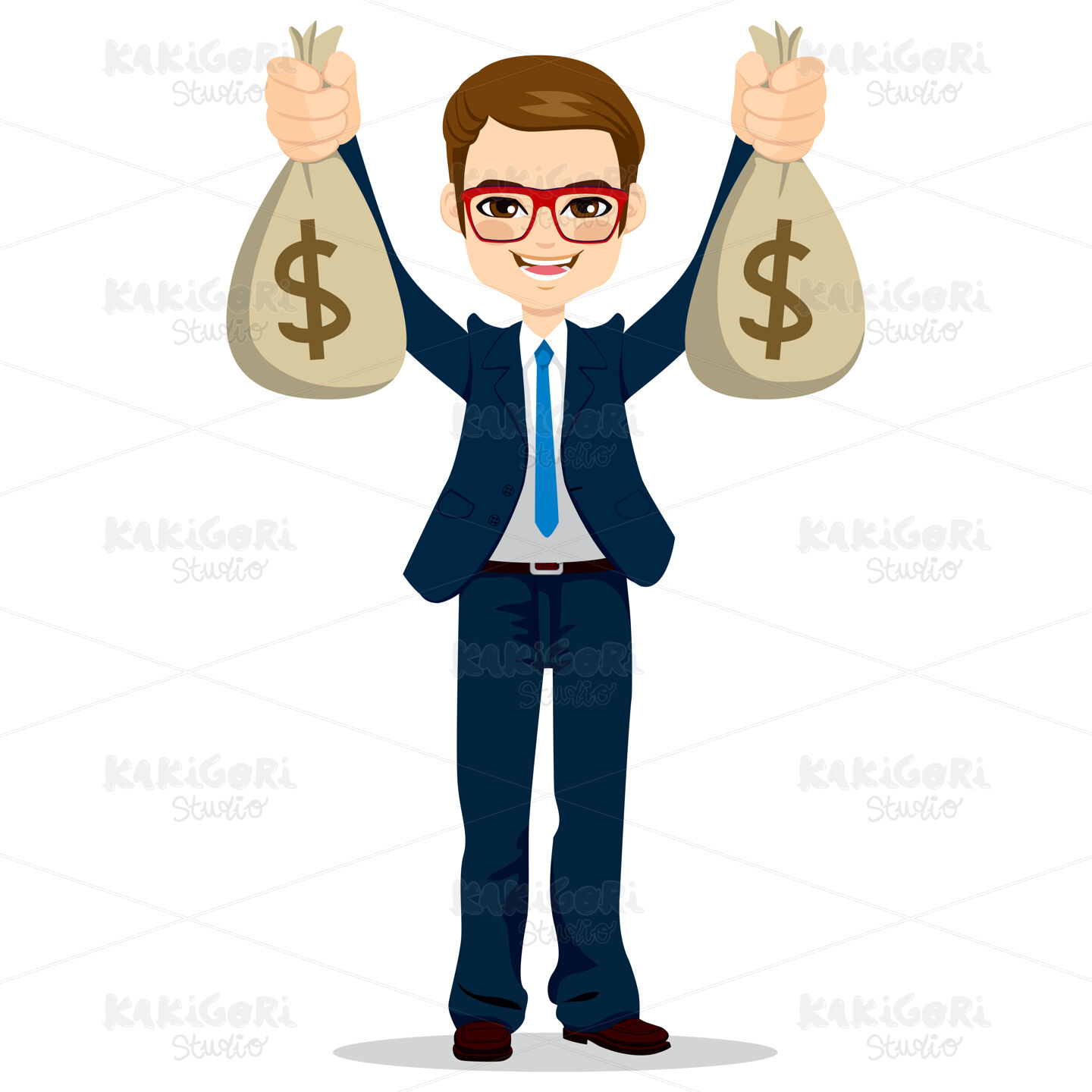 / Businessman Holding Dollar Money Bags Clipart Vector Illustration 02127