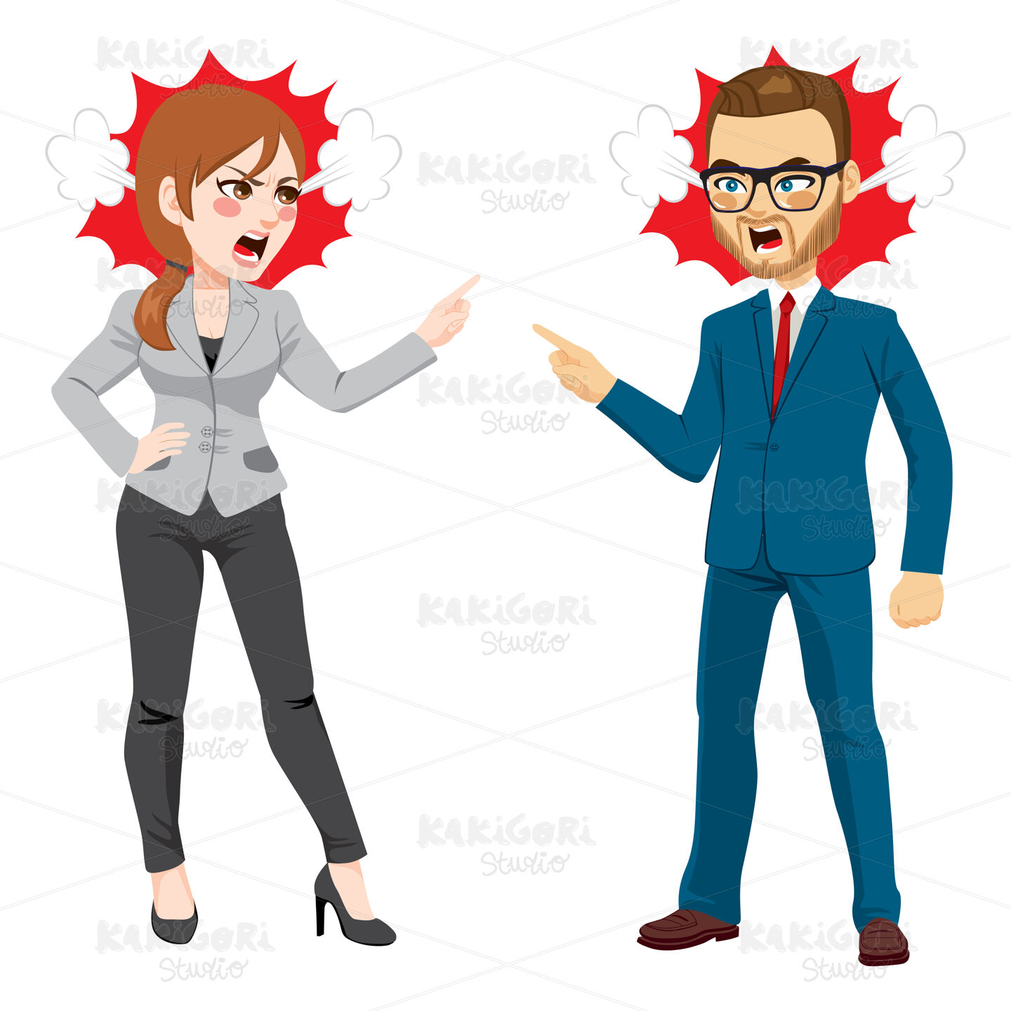 / Businesswoman Businessman Fighting Clipart Vector Illustration 03946