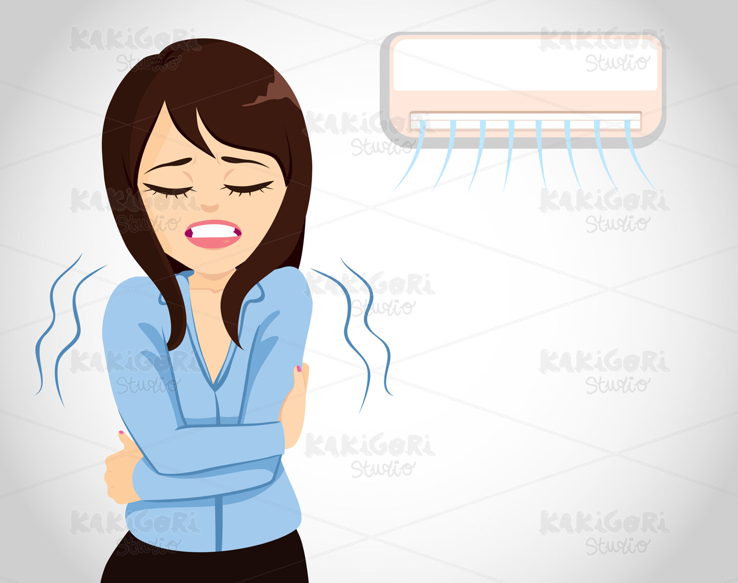 / Businesswoman Cold Air Conditioner Problem Clipart Vector Illustration 05517