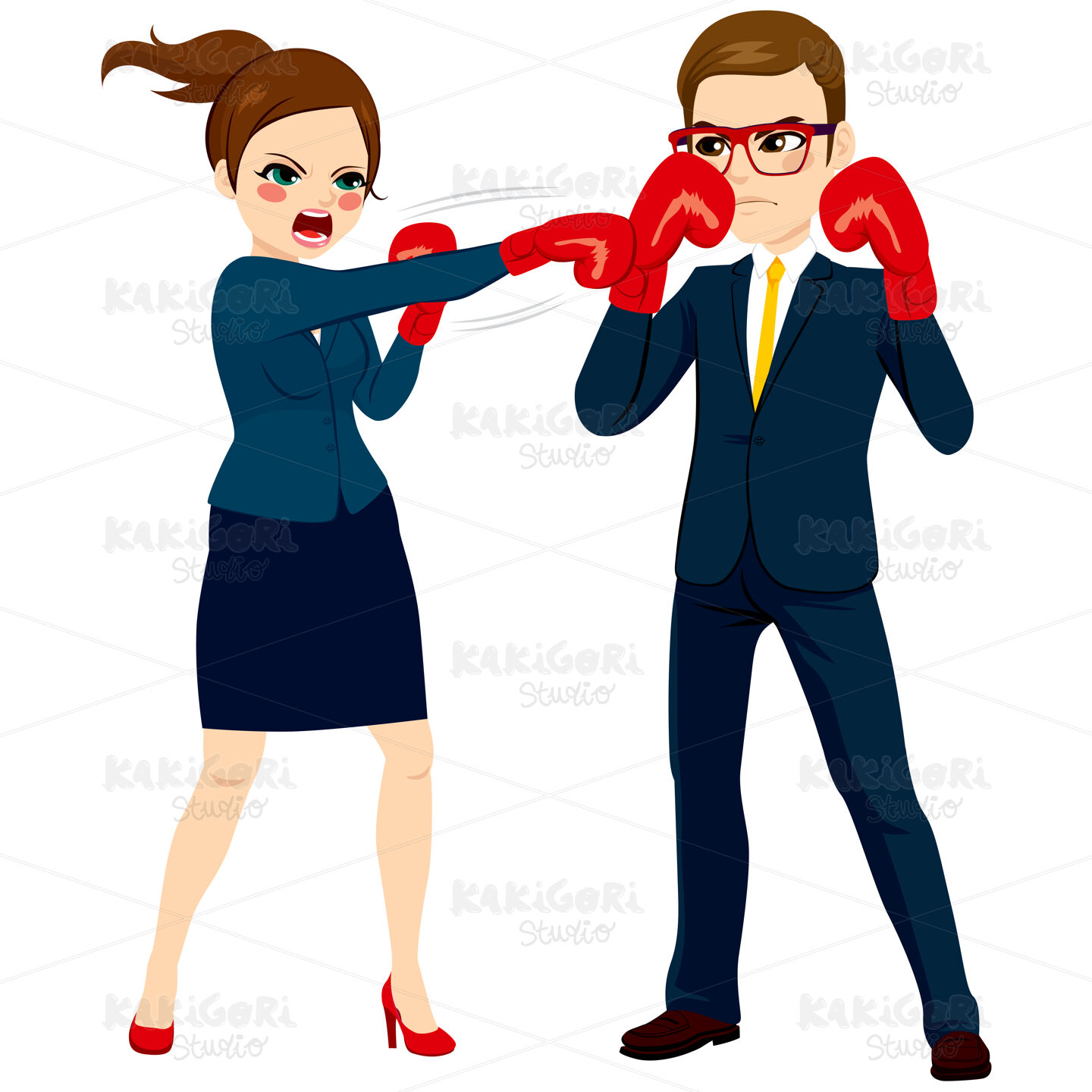Young businesswoman fighting against businessman with red globes as business competition concept