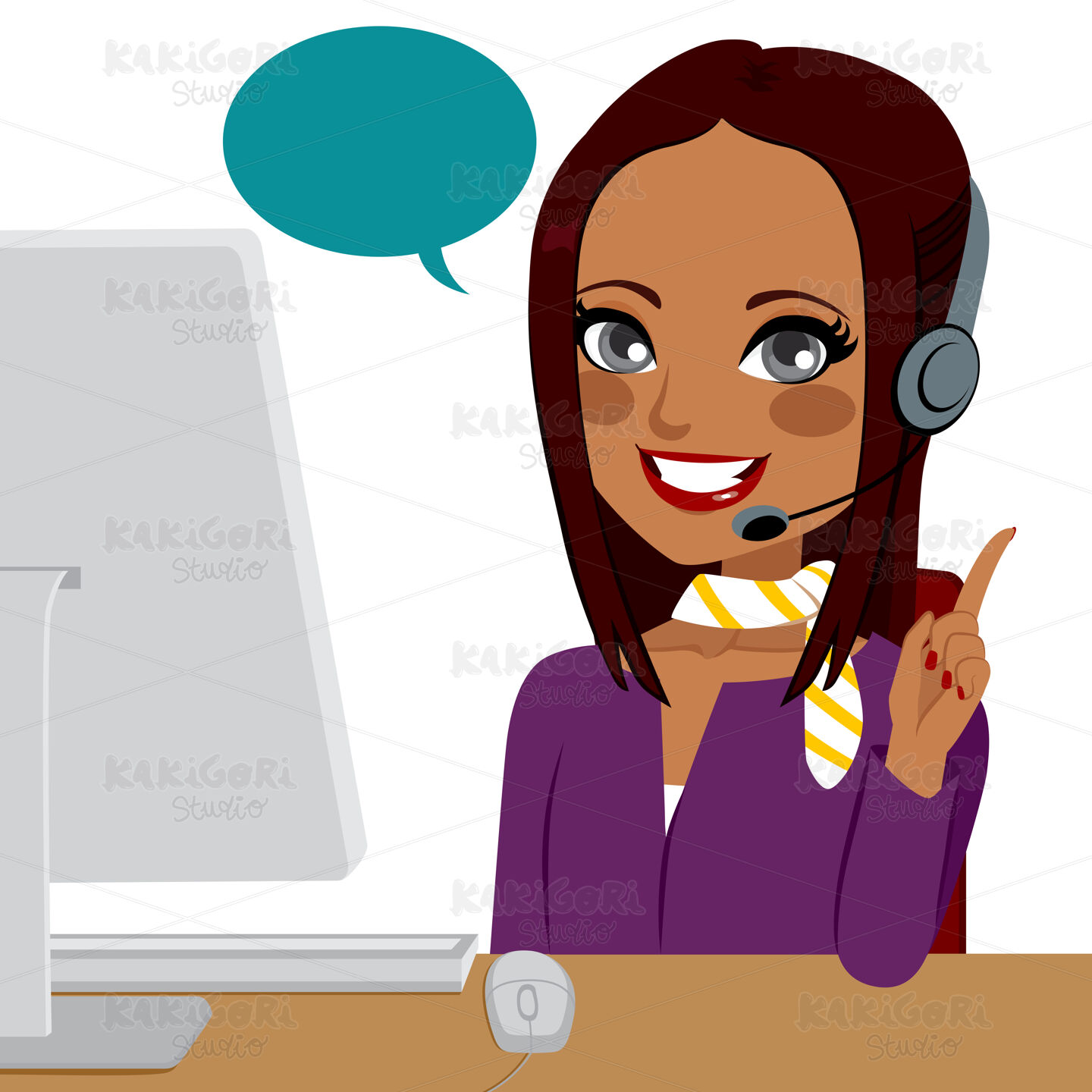 / Call Center Indian Woman Clipart Vector Illustration 02591