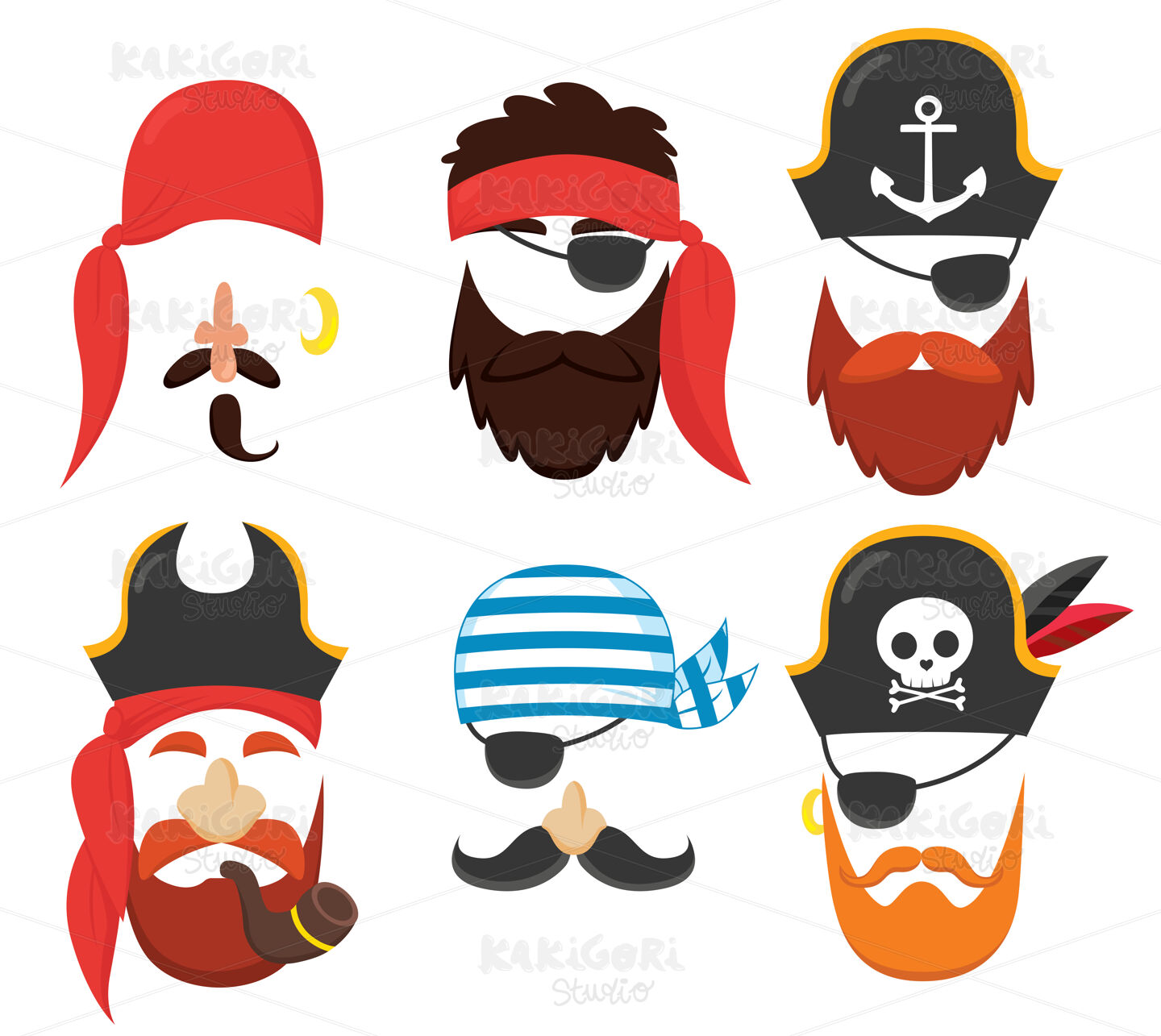 / Carnival Pirate Masks Set Collection Clipart Vector Illustration 05053