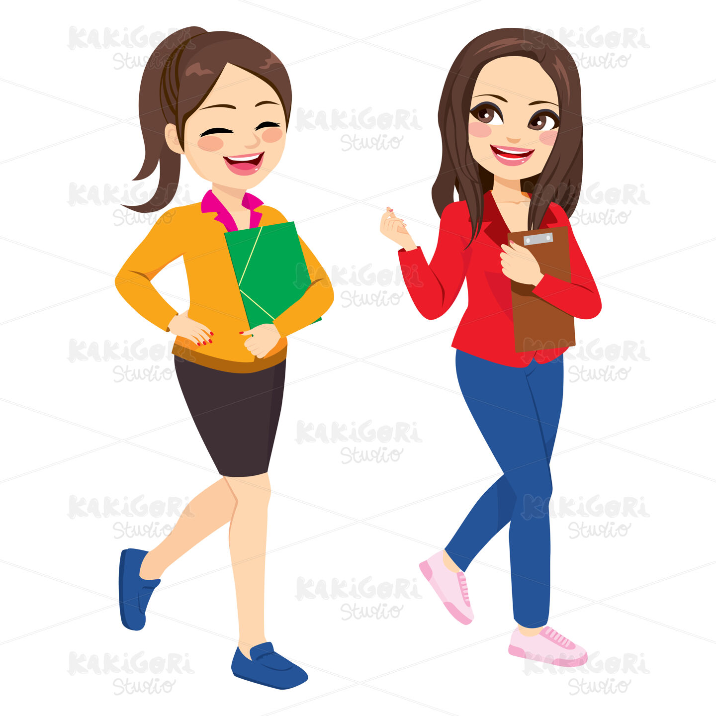 / Casual Women Talking And Walking Clipart Vector Illustration 04499