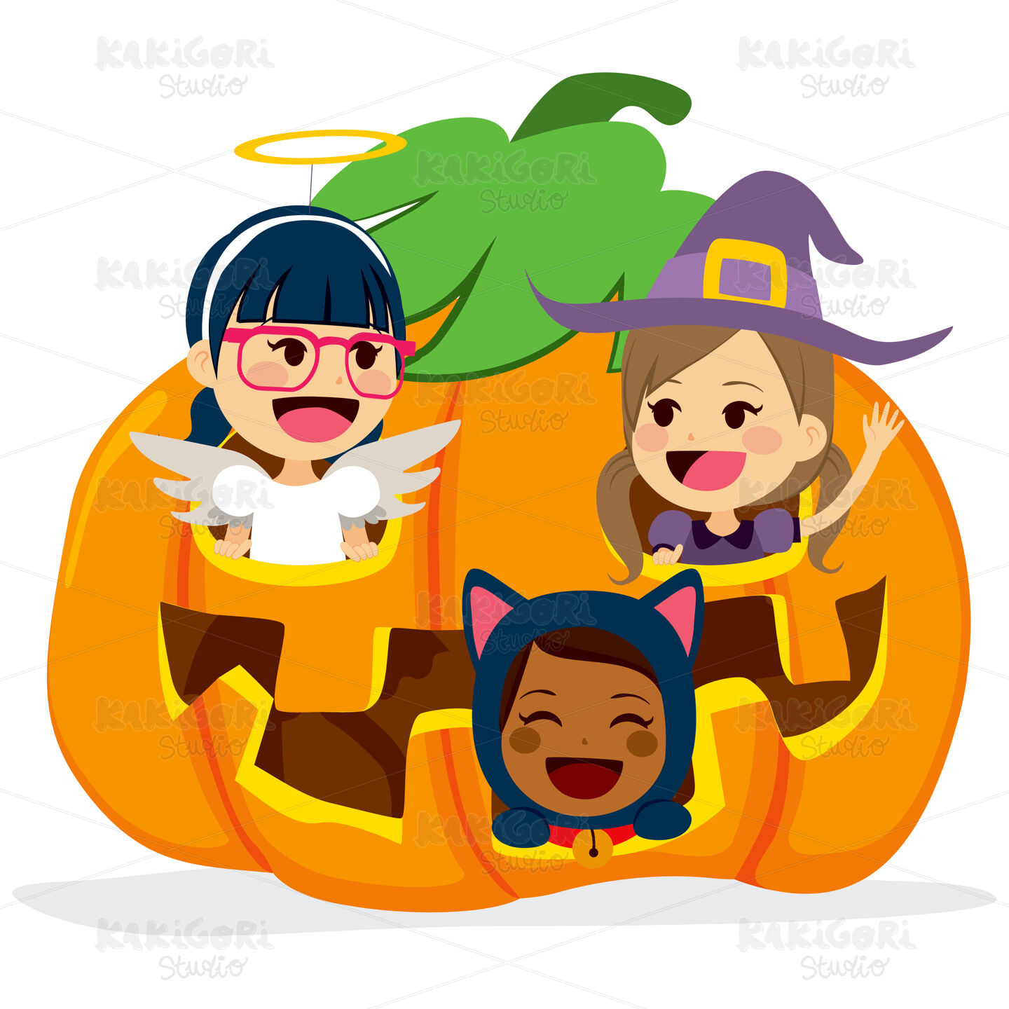 / Children Inside Halloween Pumpkin Clipart Vector Illustration 02390