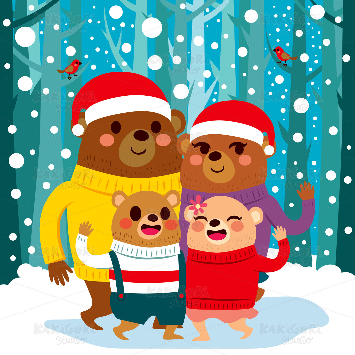 / Christmas Bear Family Clipart Vector Illustration 02983