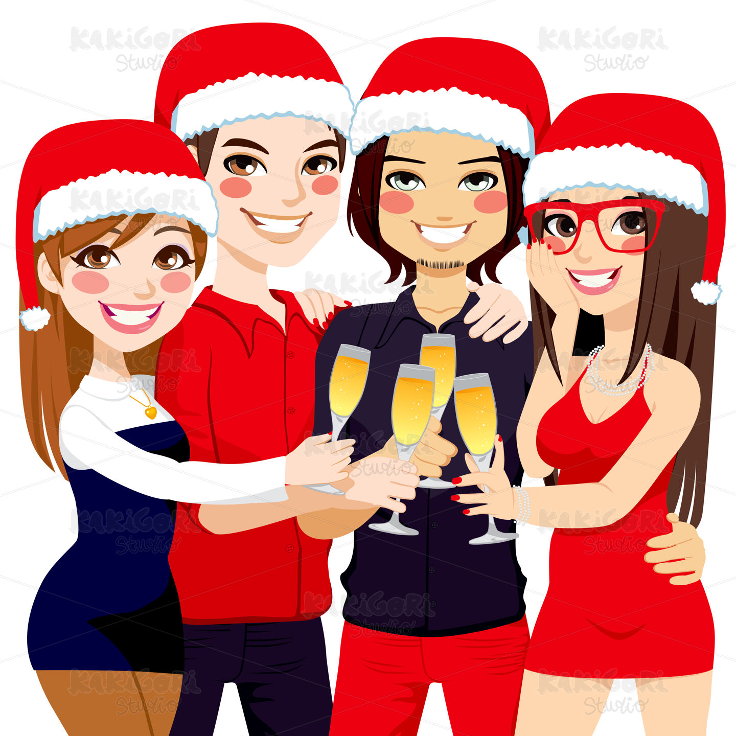 / Christmas Party Friends Toast Clipart Vector Illustration 01223
