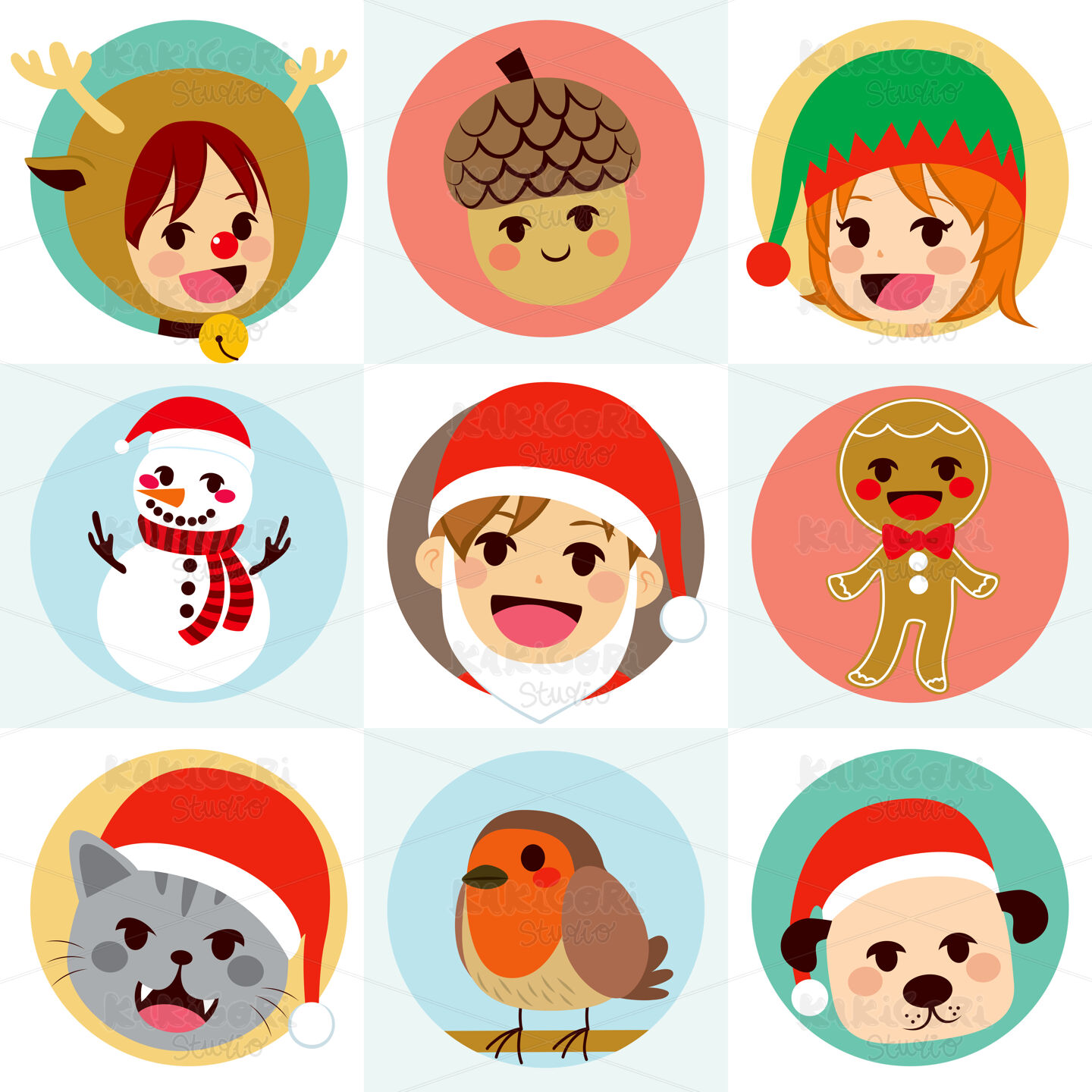 / Christmas Round Avatar Characters Clipart Vector Illustration 02869