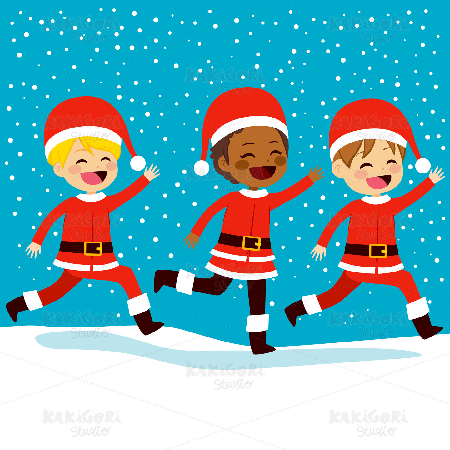 / Christmas Santa Children Running Clipart Vector Illustration 03049