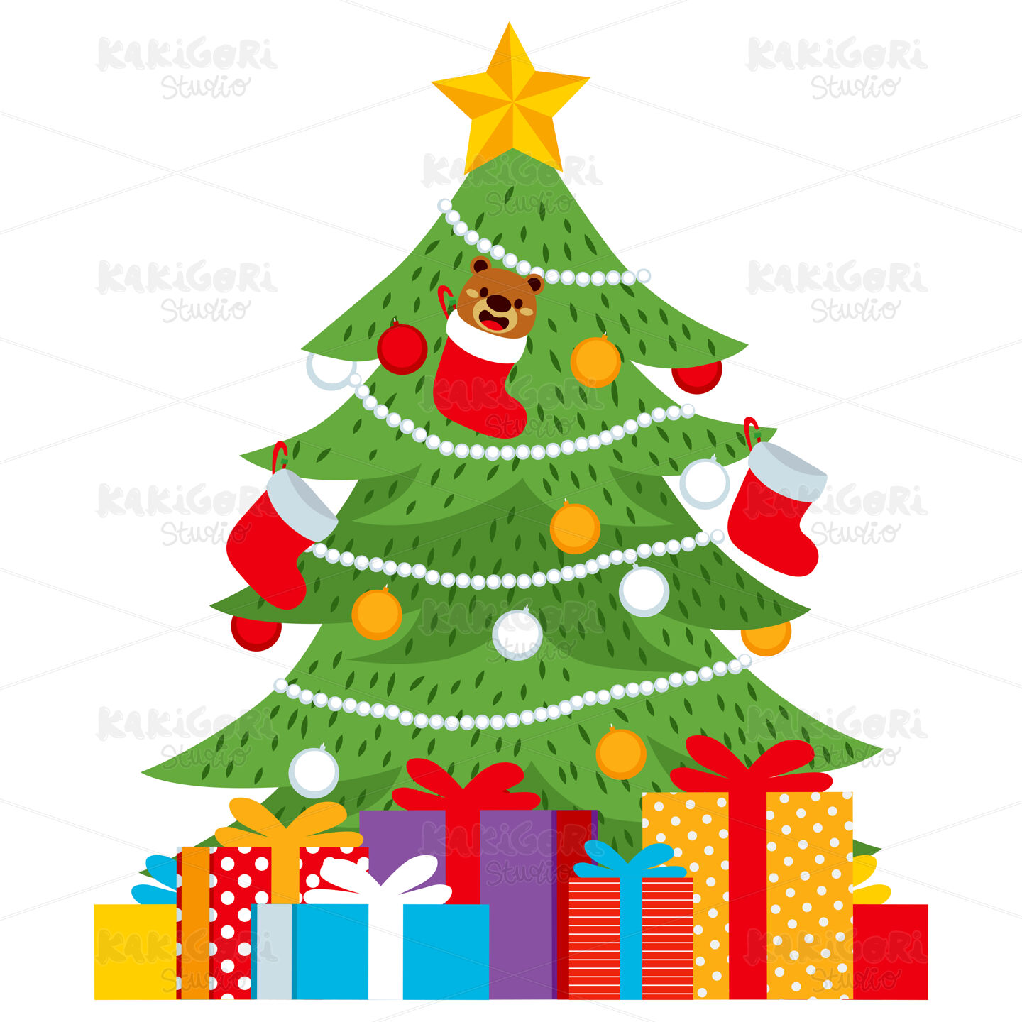 / Christmas Tree Presents Clipart Vector Illustration 02970