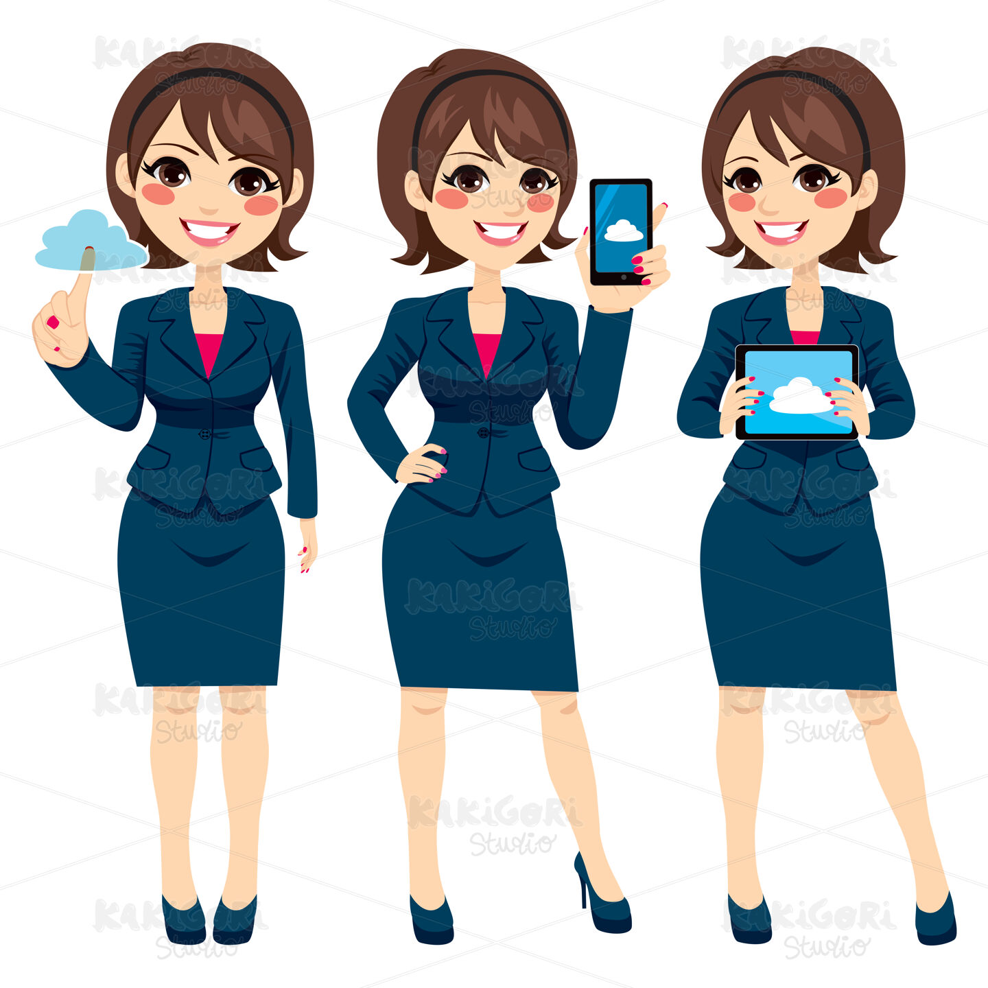 / Cloud Businesswoman Devices Clipart Vector Illustration 02618