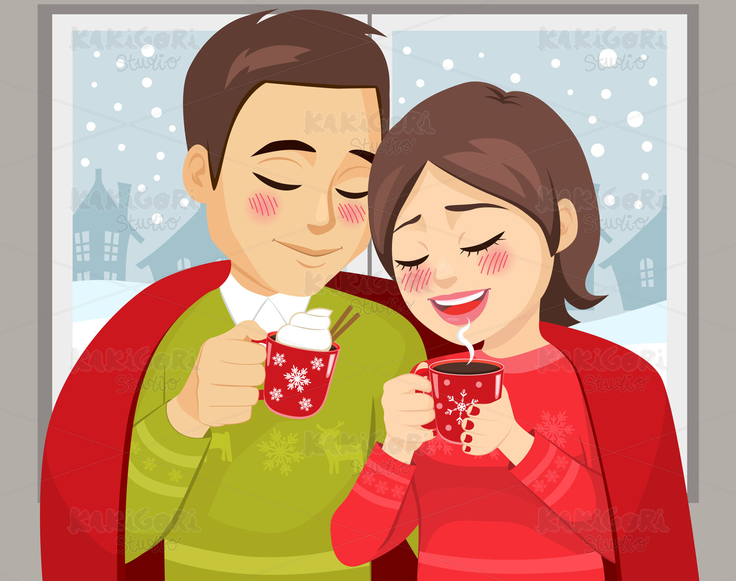 / Couple Christmas In Love Clipart Vector Illustration 05193