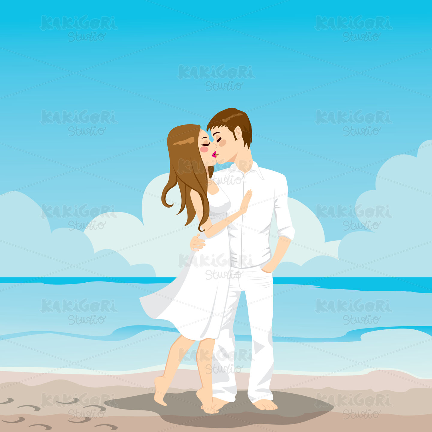 / Couple Kissing On Beach Clipart Vector Illustration 01301