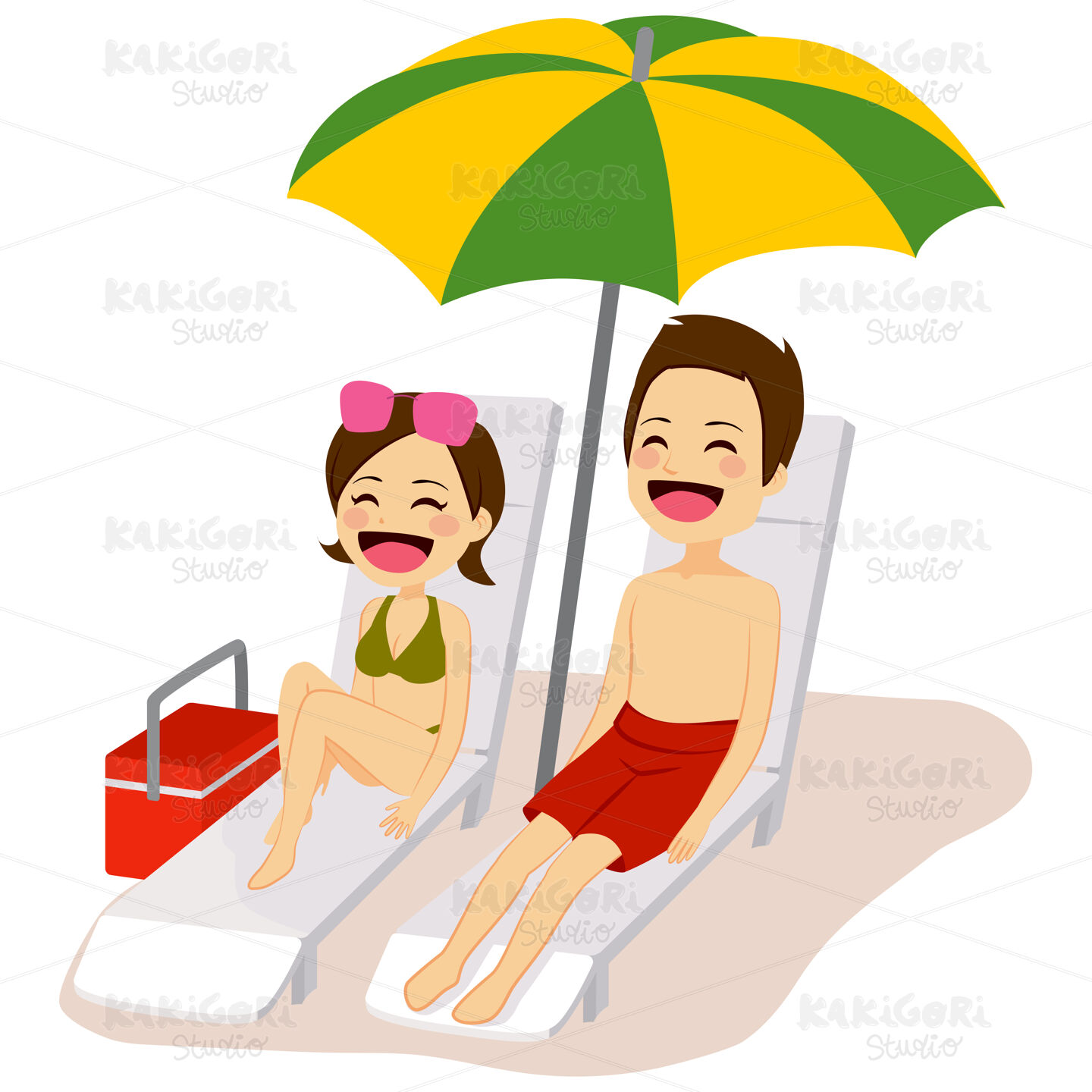 / Couple Sunbathing Relaxing Clipart Vector Illustration 02255