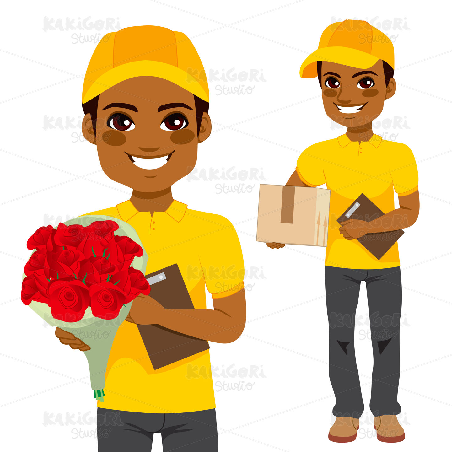 / Courier Man Flower And Parcel Clipart Vector Illustration 03115
