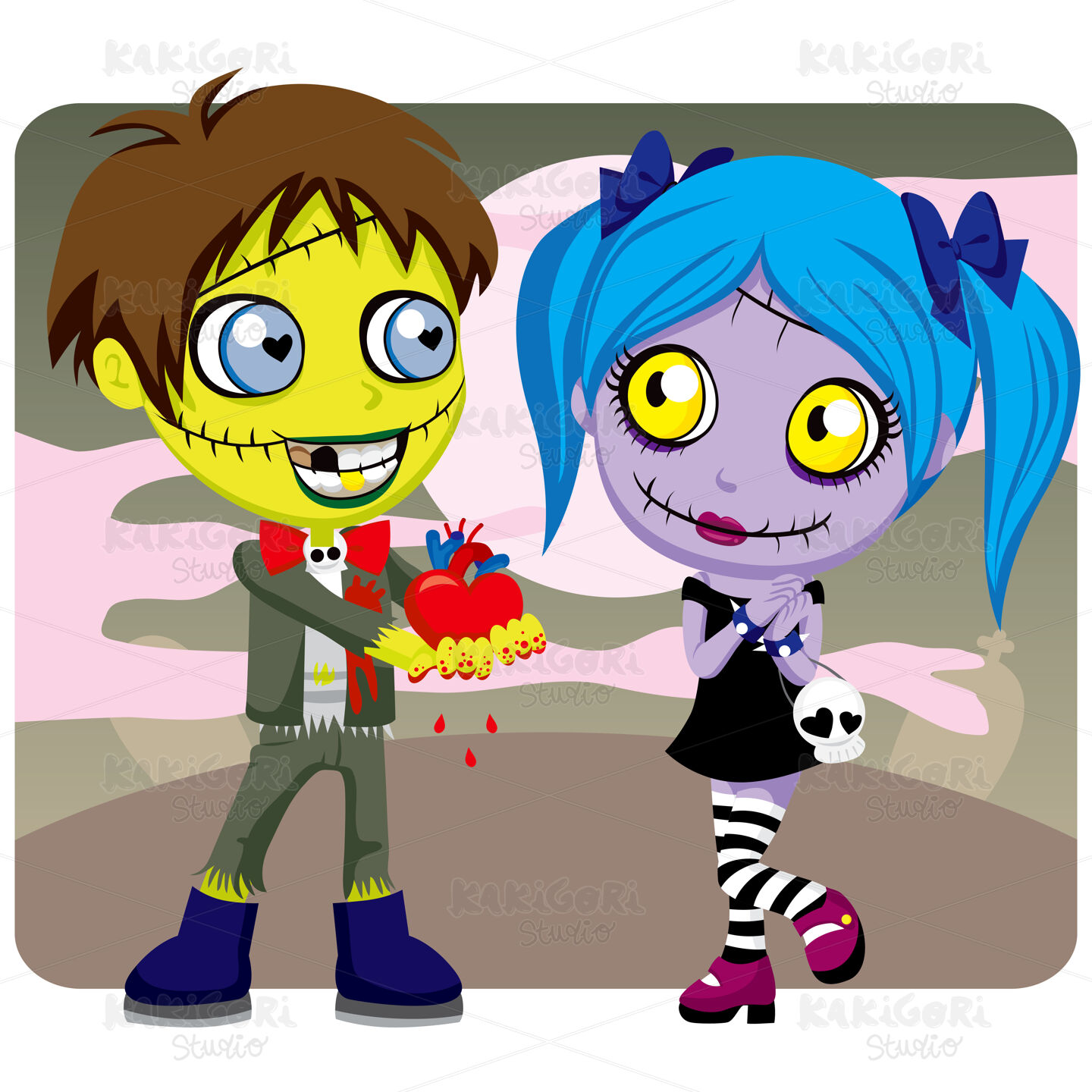 Zombie boy gives girlfriend his bloody heart on Valentines Day or Halloween date as a love present