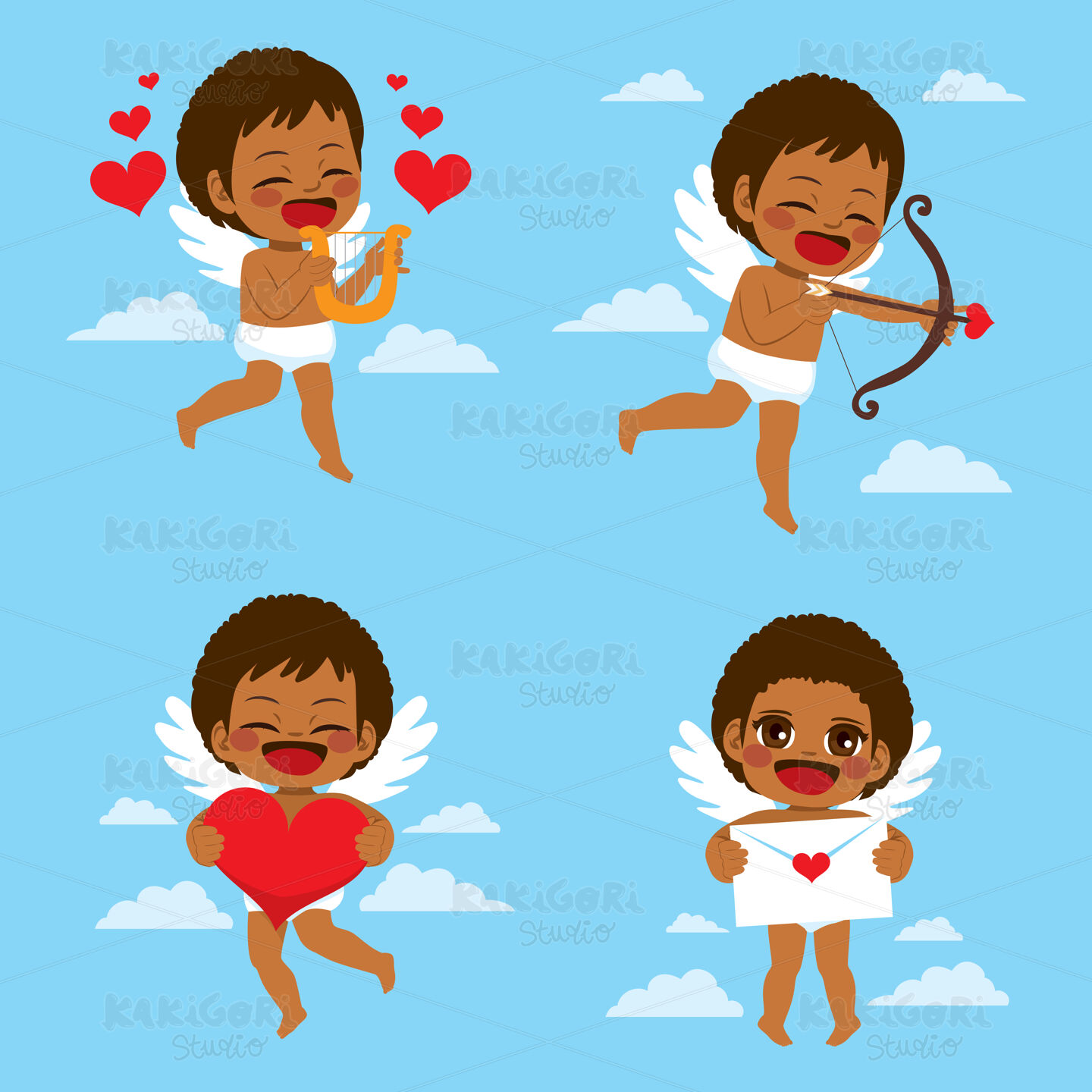 / Cute Black Cupid Character Set Clipart Vector Illustration 05234