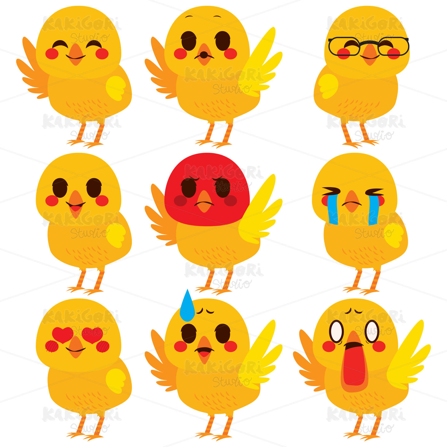 / Cute Chick Emoji Expressions Clipart Vector Illustration 03354